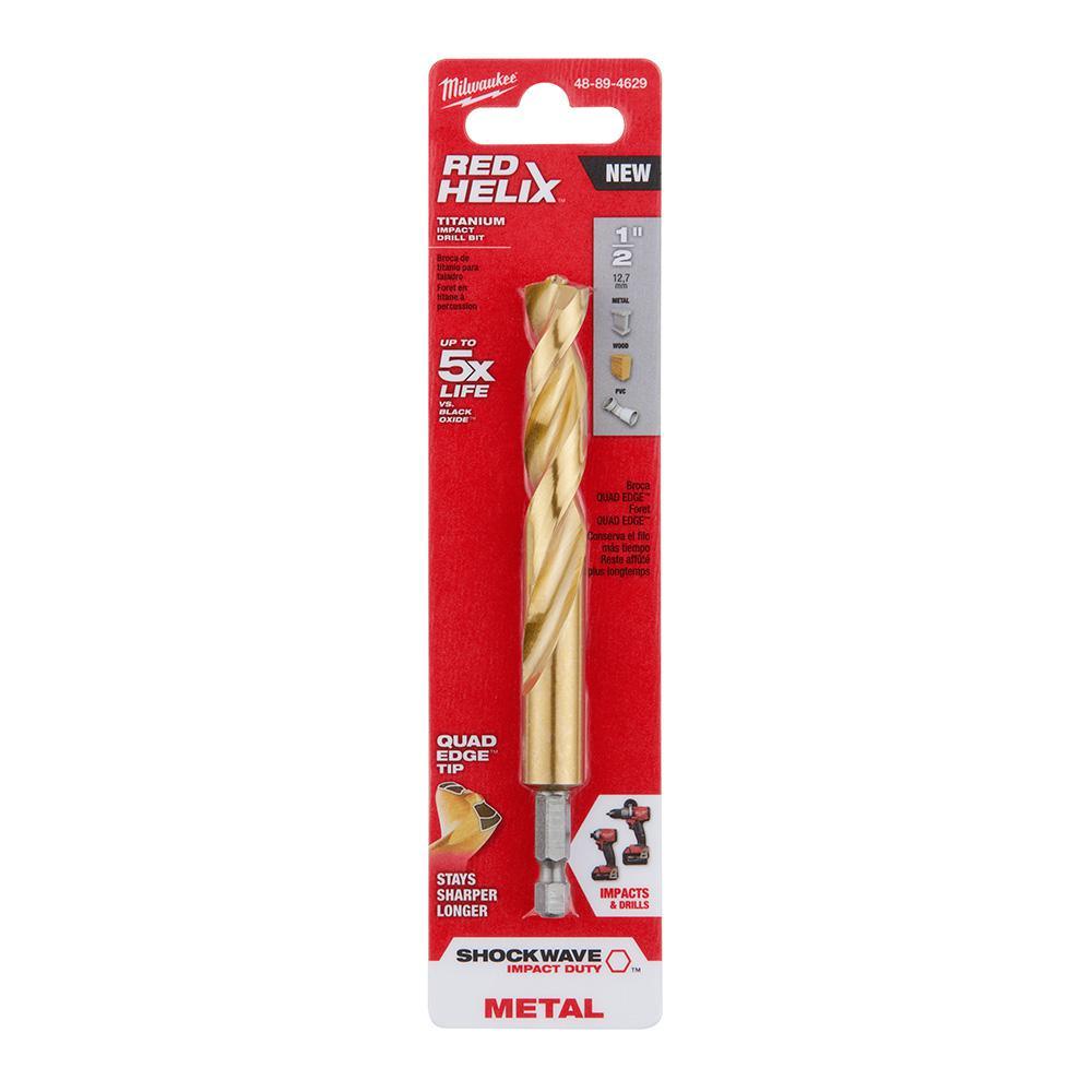 The MILWAUKEE 1/8" SHOCKWAVE RED HELIX Titanium Drill Bit is engineered for extreme durability and long life. The QUAD EDGE tip delivers a precision start and four cutting edges to create smaller chips for faster removal and less heat leading to longer bit life. Designed with a Variable Helix that includes an aggressive 35° helical angle, which ends at 15°, the tapered drill bit with RED HELIX provide Rapid Chip Removal limiting heat buildup to Stay Sharper Longer. The bit also features an internal ENHANCED TAPERED WEB that greatly increases its strength, reducing premature breakage. Ideal for various applications including but not limited to wood, plastics, and metals, Milwaukee Red Helix Titanium Drill Bits provide up to 5X life vs. black oxide drill bits.