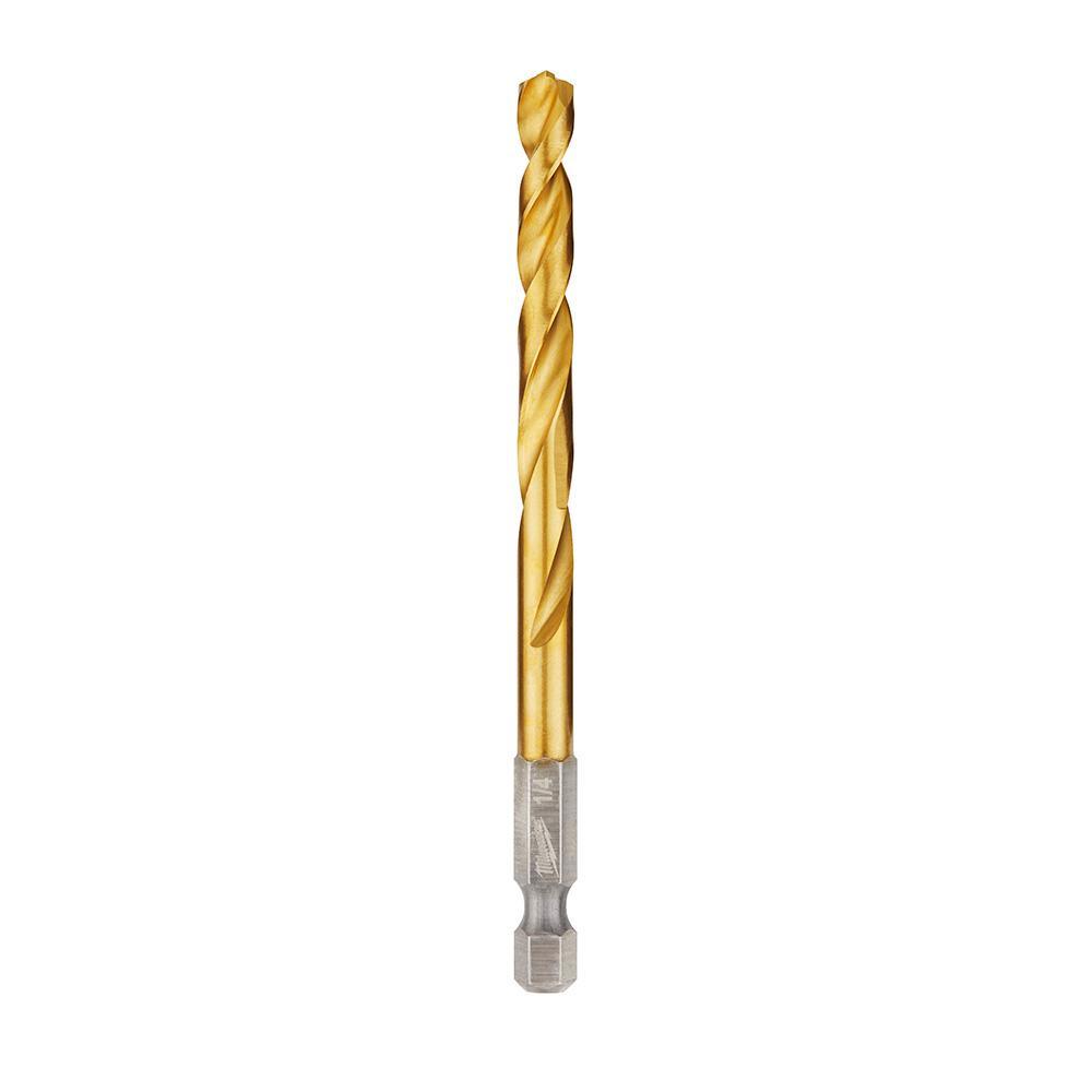 The MILWAUKEE 1/4" SHOCKWAVE RED HELIX Titanium Drill Bit is engineered for extreme durability and long life. The QUAD EDGE tip delivers a precision start and four cutting edges to create smaller chips for faster removal and less heat leading to longer bit life. Designed with a Variable Helix that includes an aggressive 35° helical angle, which ends at 15°, the tapered drill bit with RED HELIX provide Rapid Chip Removal limiting heat buildup to Stay Sharper Longer. The bit also features an internal ENHANCED TAPERED WEB that greatly increases its strength, reducing premature breakage. Ideal for various applications including but not limited to wood, plastics, and metals, Milwaukee Red Helix Titanium Drill Bits provide up to 5X life vs. black oxide drill bits.