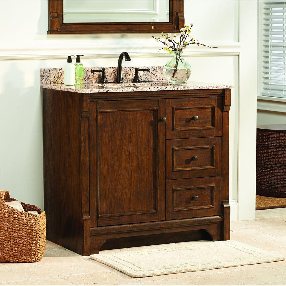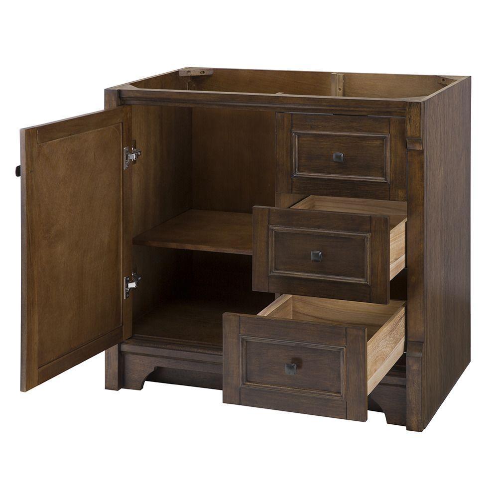 Creedmoor 36 in. W Bath Vanity Cabinet Only in Walnut with Right Hand Drawers