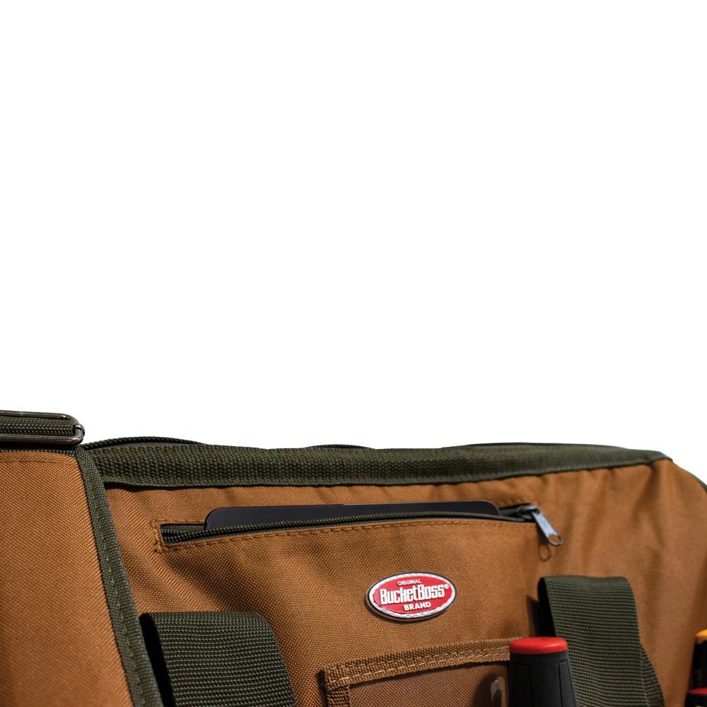 The Bucket Boss Gatemouth 20 Tool Bag is ideal for the DIY'er and is perfect for holding small hand tools. There are 37-Pockets to hold tools or other items in place. The bottom of the bag is reinforced with padded ripstop material. Great features include a zippered pocket for holding an iPad or tablet. The padded shoulder strap makes it easy to transport your tools while on the job.