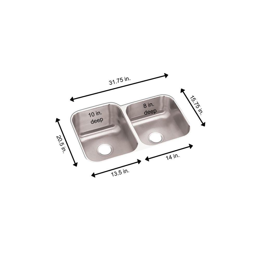 This Elkay Undermount 31-1/4 in. x 20-1/2 in. Double Bowl Kitchen Sink forms a perfect complement to most styles with an understated installation design. Generous basins provide plenty of working room, allowing for a dish strainer, colander or extra washing space as desired to make the most of your workspace. The sink has side and bottom pads to reduce the noise from dishes and running water.