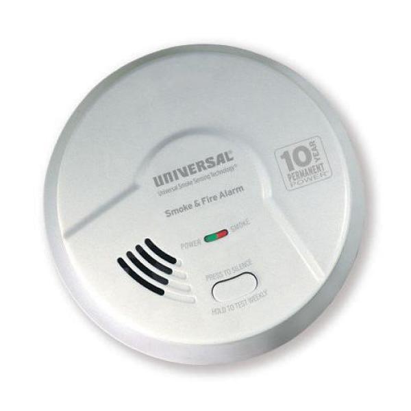 The Universal Security Instruments Battery Combination Smoke Sensing Smoke and Fire Smart Alarm provides 10 years of continuous protection against deadly threats in the home. Patented Universal Smoke Sensing Technology provides the benefits of both photoelectric and ionization alarms in one device to protect against fast flaming and slow smoldering fires. Perfect for new or replacement installations, this maintenance-free alarm is suitable for every room in houses, apartments and mobile homes. Permanent Power also saves money from battery replacements (up to $38.00 over the 10-year life of the alarm), eliminates annoying low battery chirps and helps the environment by reducing environmental waste from disposed batteries. Perfect for replacement of existing Universal Electric alarms, this unit features a large mounting base to cover imperfections in drywall and offers the option to replace retrofitting applications. Once the alarm is deactivated, the tamper resistant feature turns on to prevent deactivated alarms from being reinstalled. For maximum protection, install an alarm inside every bedroom, outside every sleeping area and on all levels of the dwelling.