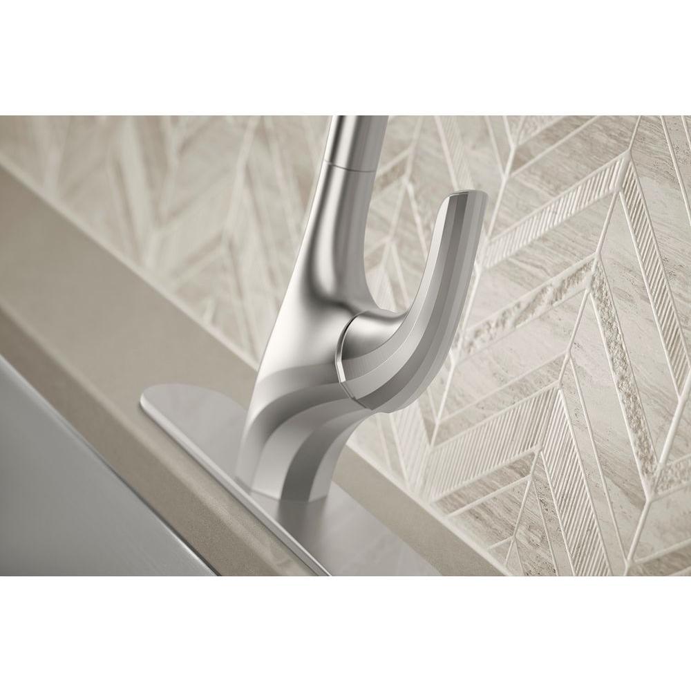 With subtle lines emanating from its handle, the Trielle pull out kitchen faucet brings a touch of glamour to contemporary design. DockNetik technology secures spray head in place through our signature magnetic docking system. 2-function spray head features stream and Sweep, a wide forceful spray that makes cleanup easier, to facilitate all the various tasks of the kitchen space.
