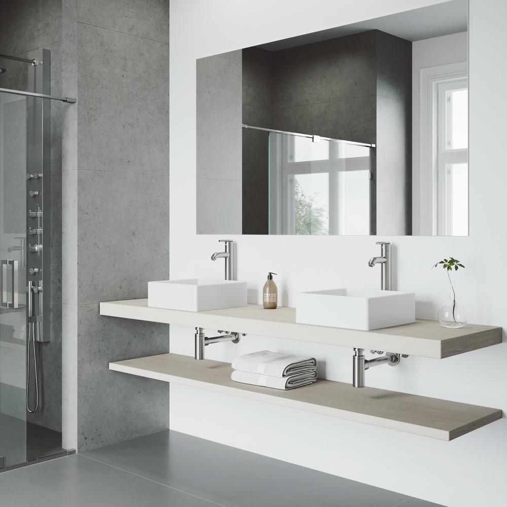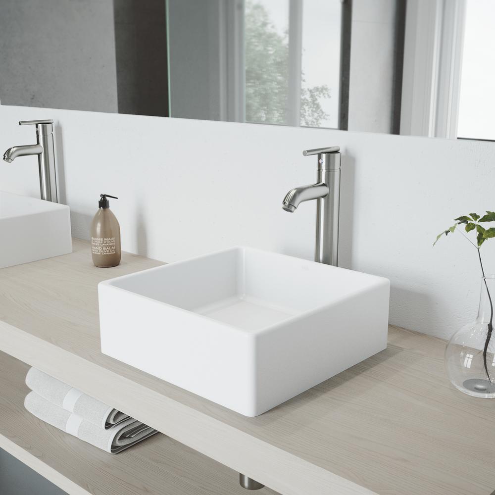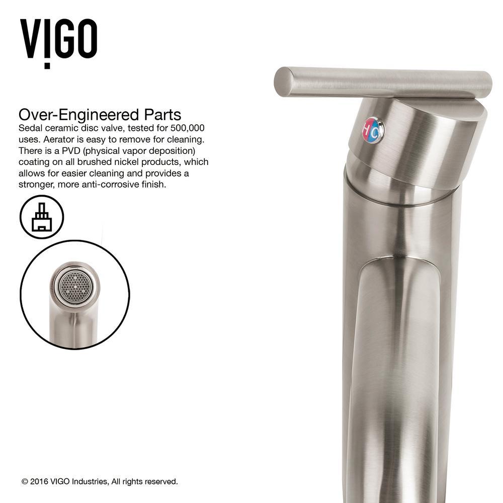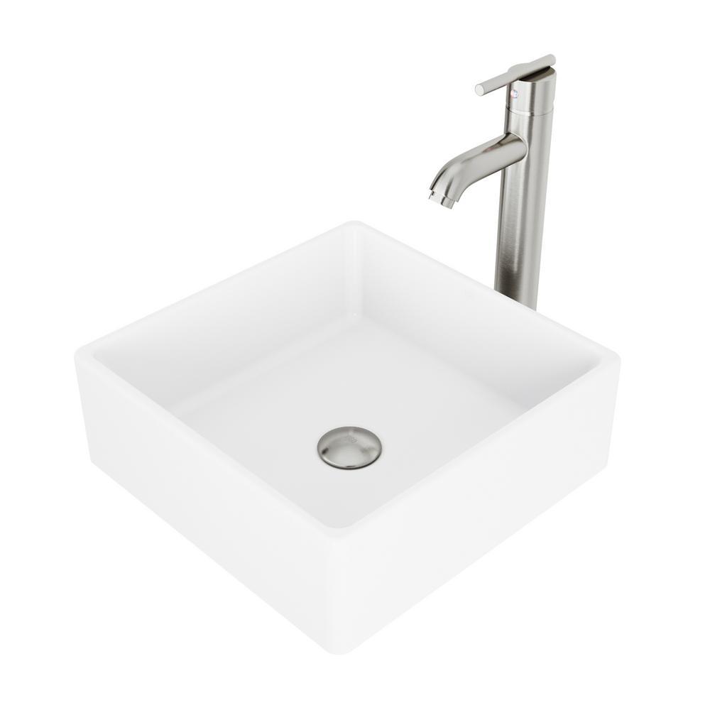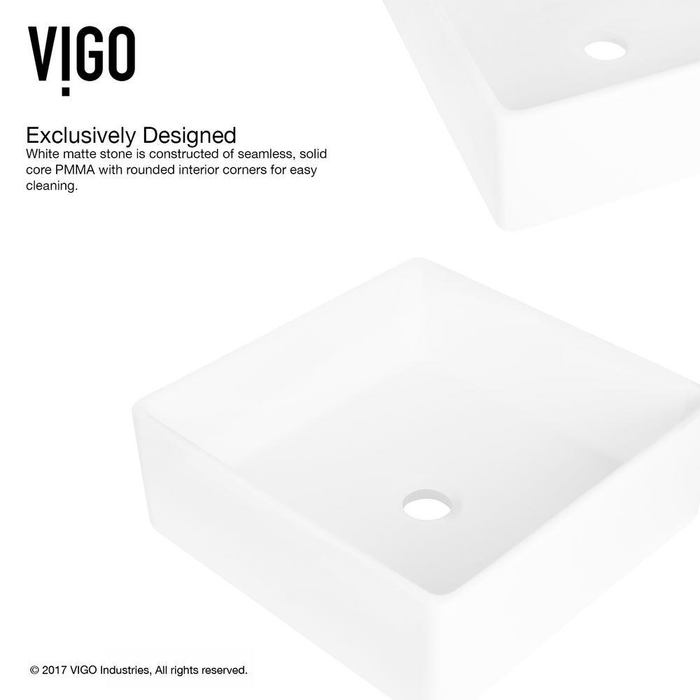 The VIGO Dianthus Matte Stone Vessel Bathroom Sink Set with the Seville Vessel Faucet is a visual representation of the artistic regeneration. A sizable sink, the Dianthus is made of non-porous Matte Stone composite, rendering it resilient to scratches, stains and general impact. The sink is paired with the Seville Vessel Faucet which features a slightly industrial design to add dimension to an already impressive setup. A complementary pop-up drain completes this one-of-a-kind set.