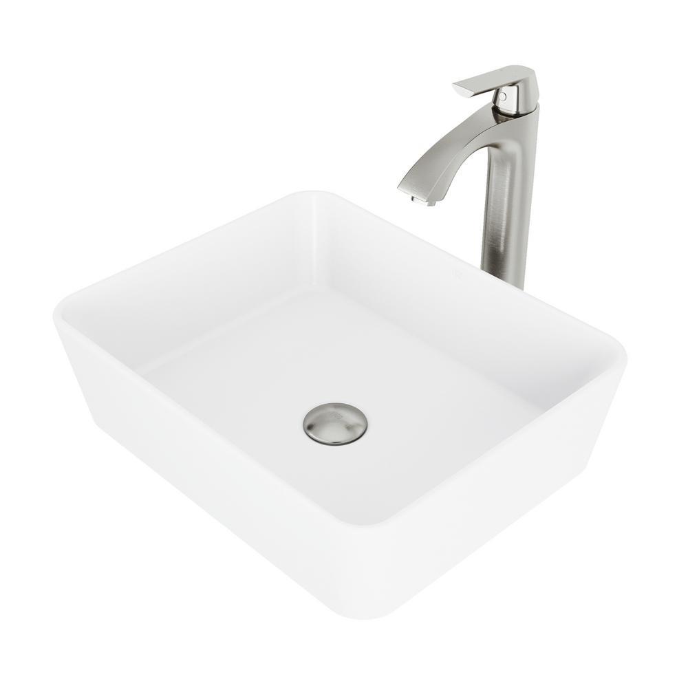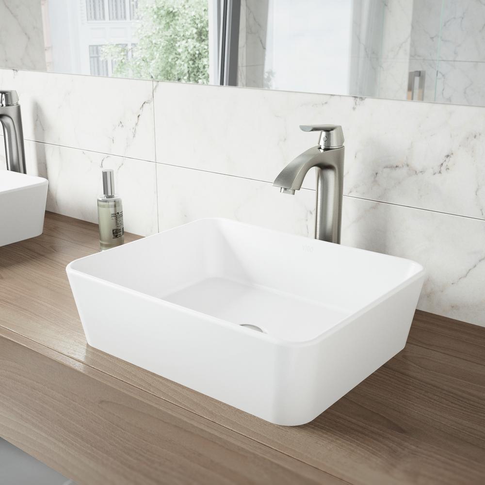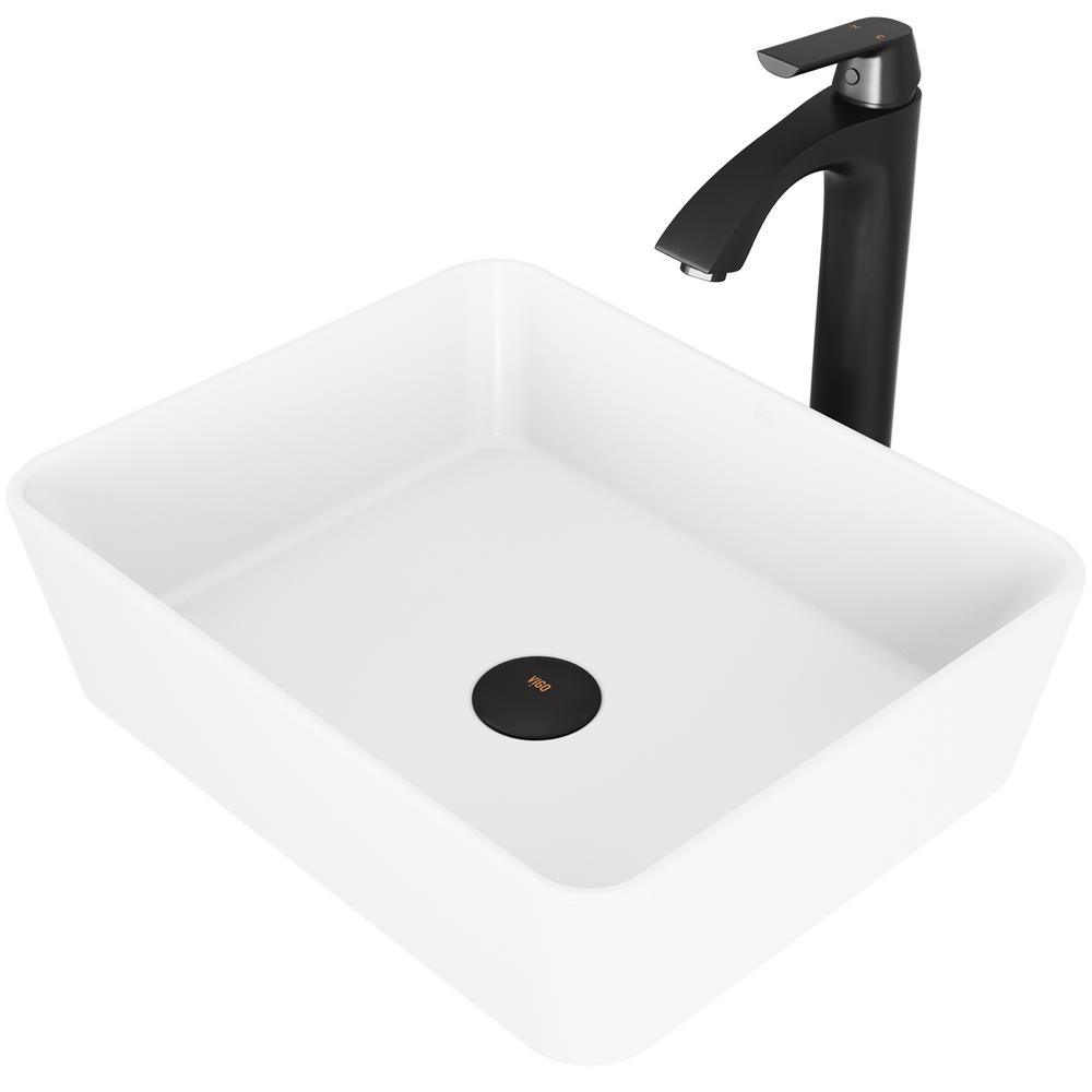 Dive into something new with the VIGO Marigold Matte Stone Vessel Bathroom Sink and Linus Vessel Faucet. The Marigold is made from solid, non-porous composite that resists scratches, stains and impact. It gracefully receives the water that comes from the premium Linus Vessel Faucet. With interesting shapes and a timeless aesthetic, this set will easily become a favorite in your home.