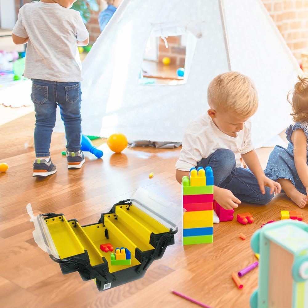 - Constructed from rugged plastic this case is a long-lasting option for all your storage needs. The stair-step design of the toolbox when fully open distributes the weight evenly for stability to avoid it from tipping over.