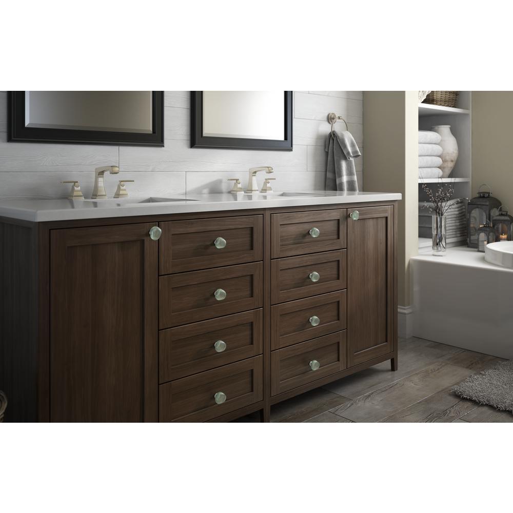 • Classic satin nickel finish with natural aqua sea glass complements most wood finishes