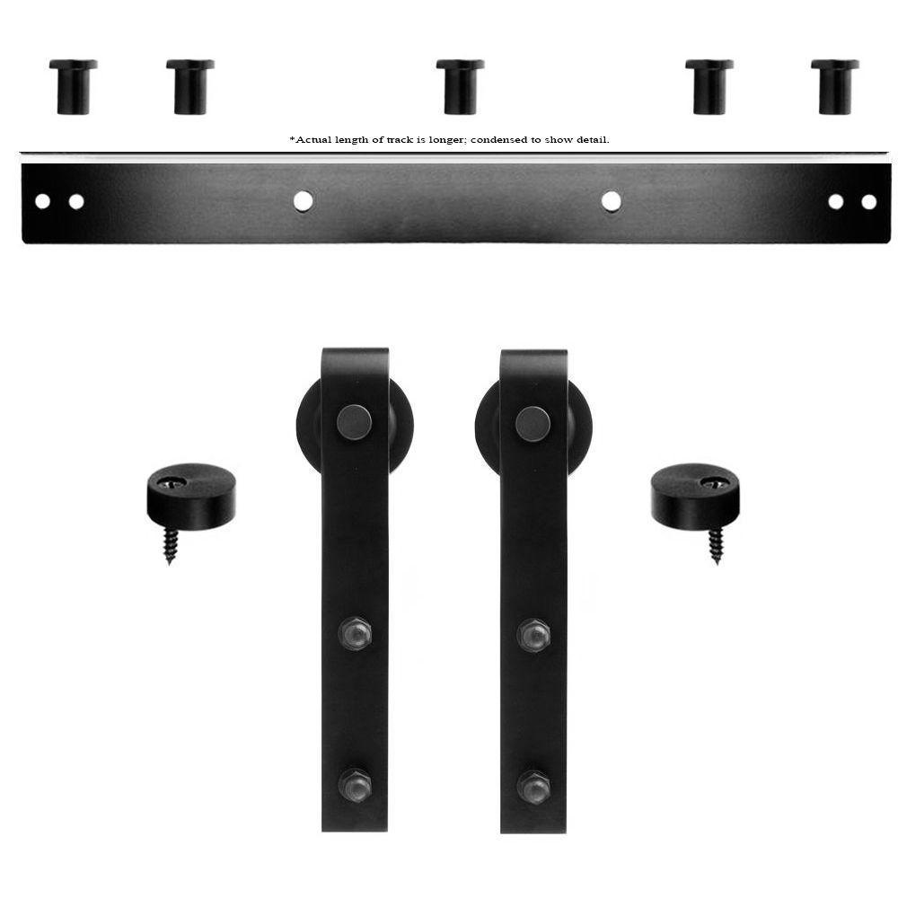• Black steel rolling track system is easy to assemble and attach to sheetrock wall using supplied wall mount trim board