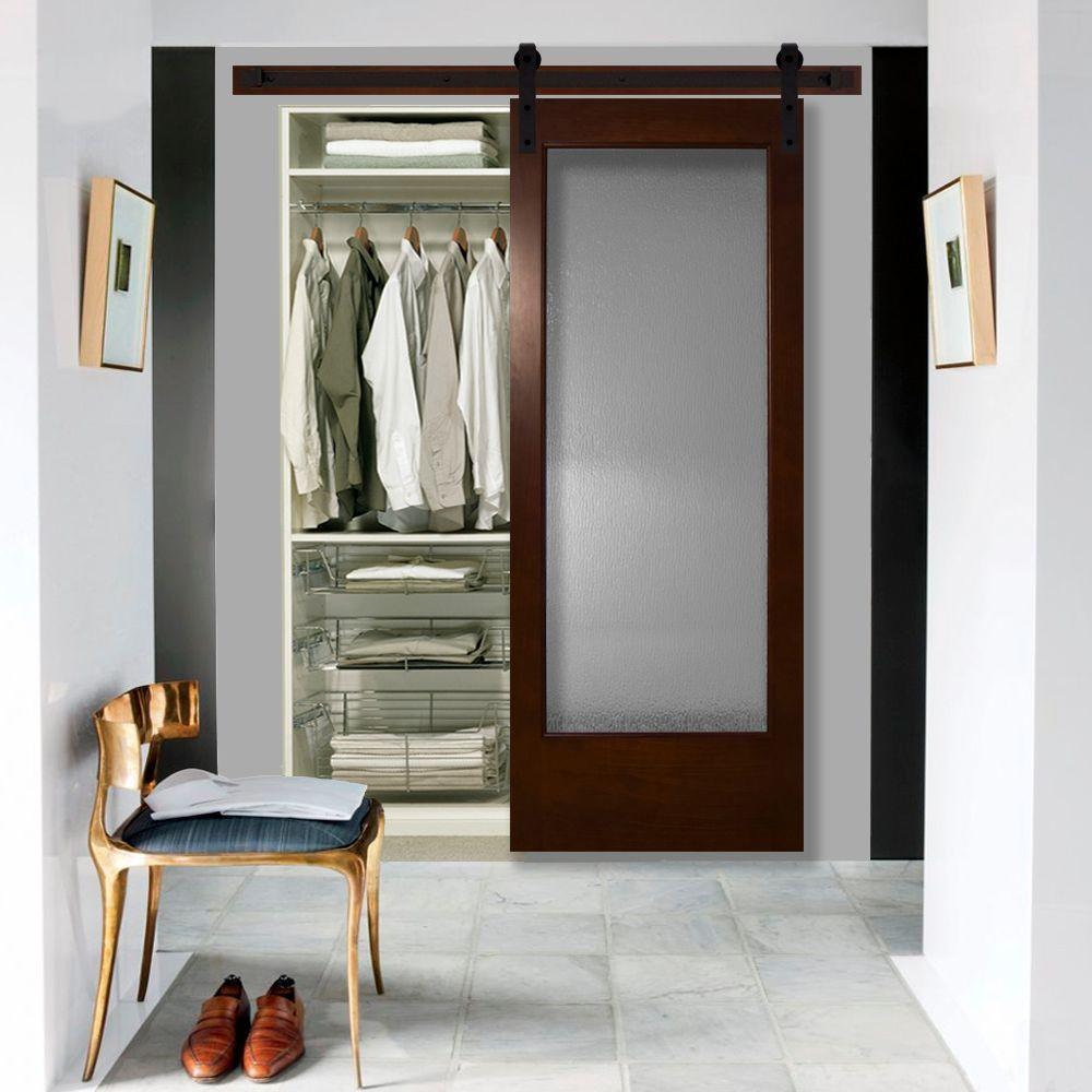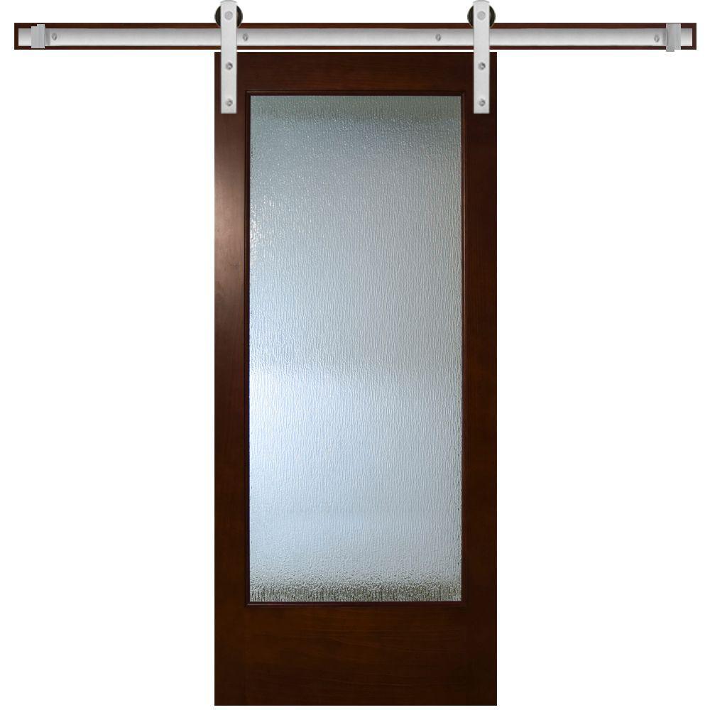 30 in. x 84 in. Modern Full Lite Rain Glass Stained Pine Interior Sliding Barn Door with Hardware Kit