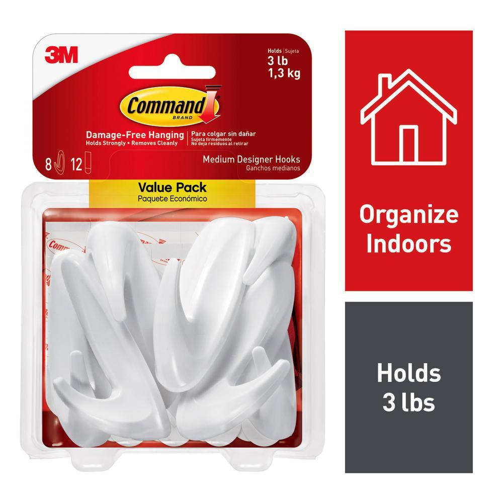 Command Hooks are available in a wide range of designs to match your individual style and decor. They also come in a variety of sizes and hold a surprising amount of weight - up to seven and a half pounds. Forget about nails, screws and tacks, Command Hooks are fast and easy to hang. Using the revolutionary Command Adhesive, stick to many surfaces, including paint, wood, tile and more. Yet, they also come off leaving no holes, marks, sticky residue or stains. Rehanging them is as easy as applying a Command Refill Strip, so you can take down, move and reuse them again and again.