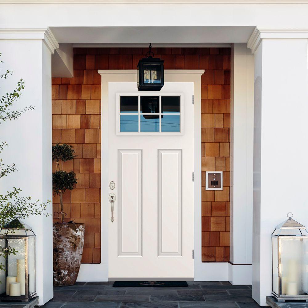 • 2-panel door with 6 lite external grille adds light and style to your entryway