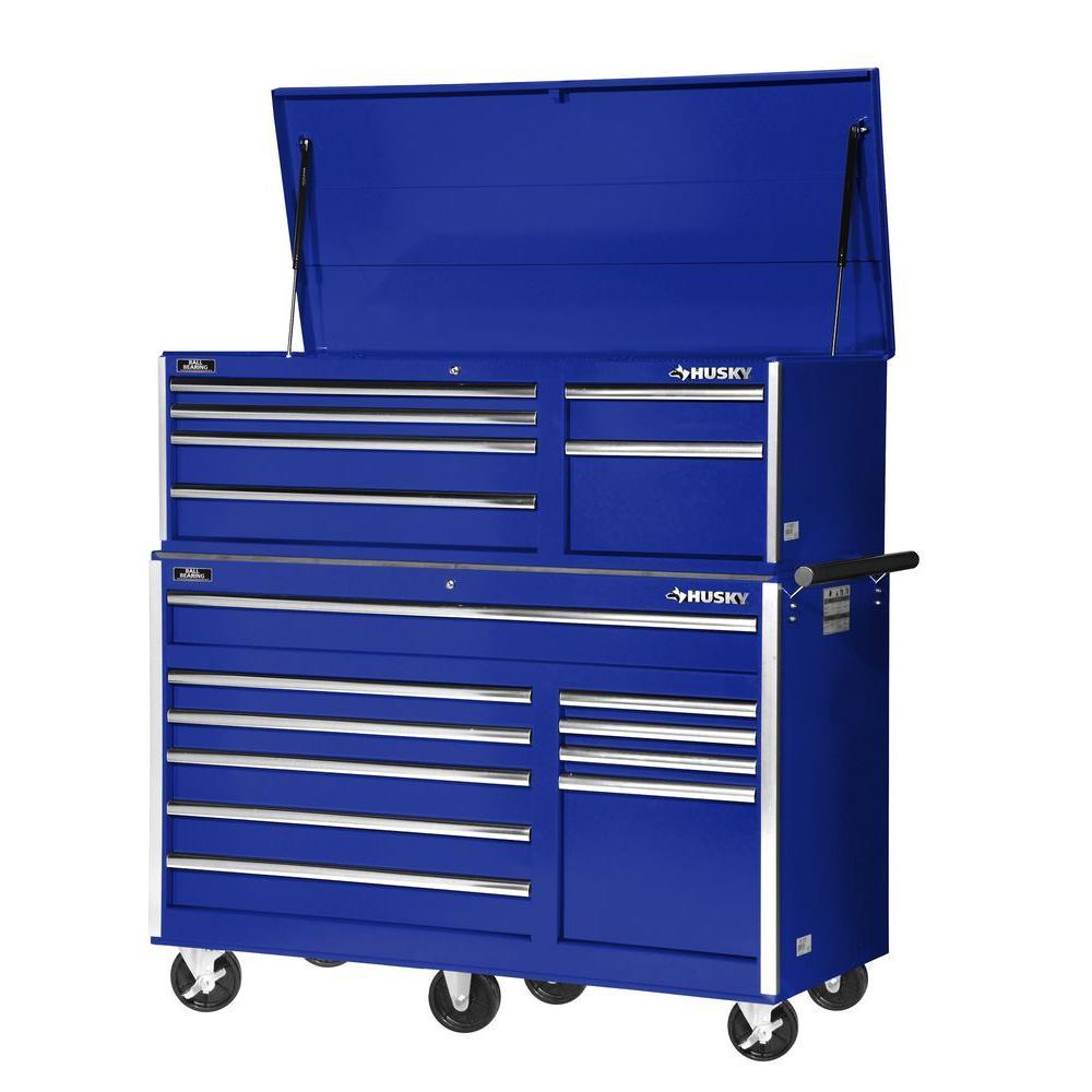 56 in. 10-Drawer Rolling Cabinet Tool Chest in Blue