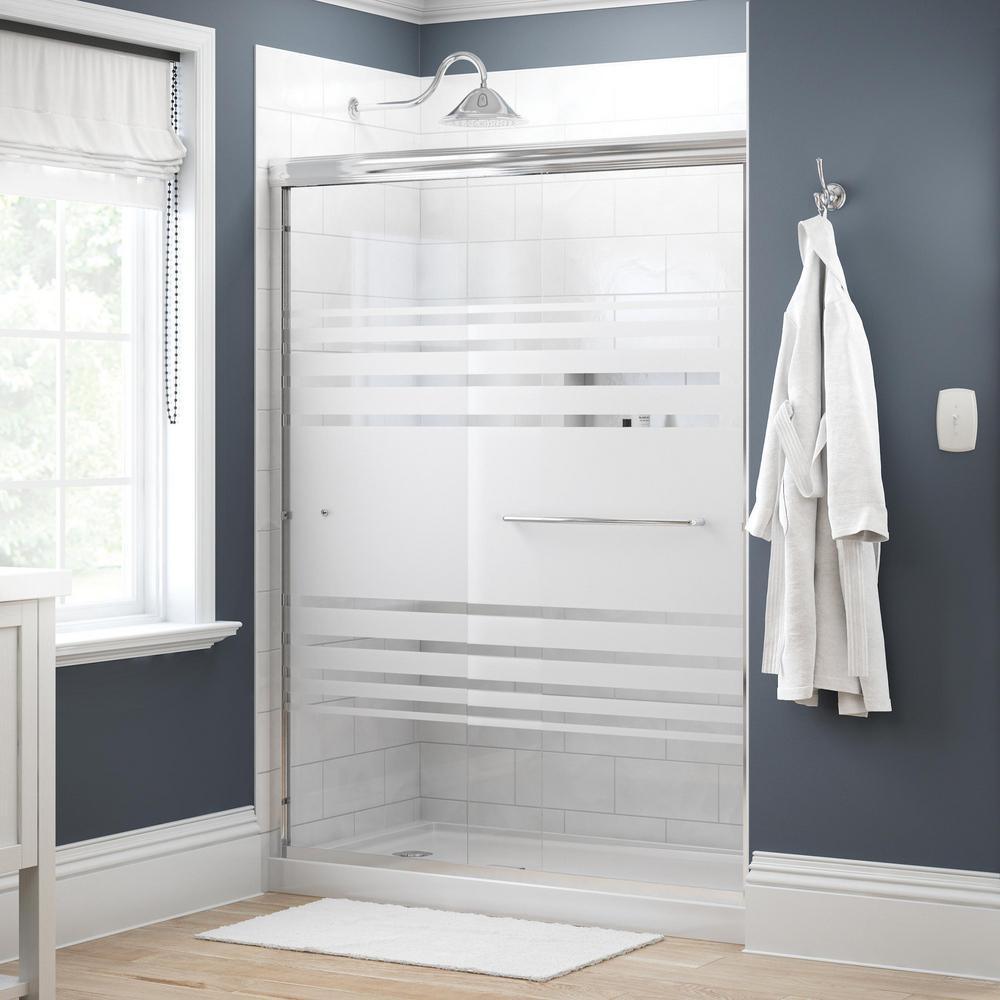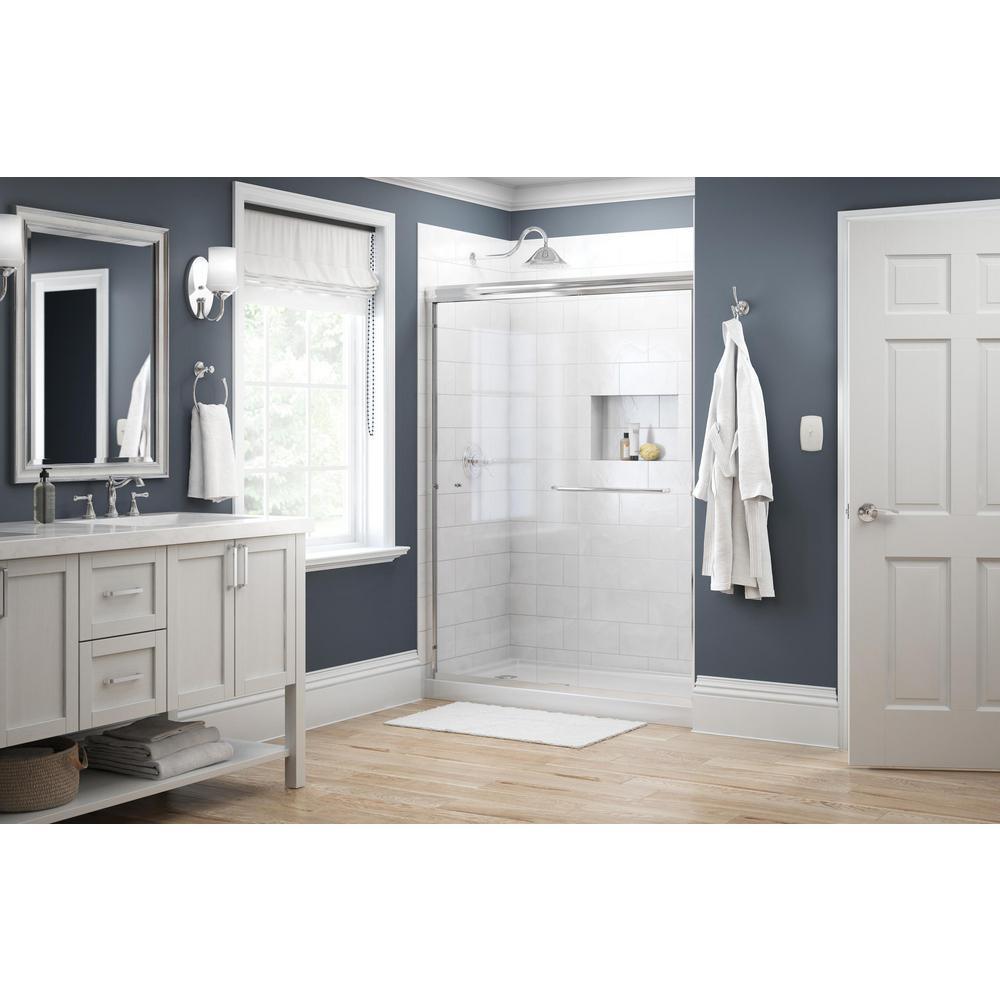 Whether you’re looking for a moderate DIY project or working on a bathroom remodel, upgrading your bathroom with a new sliding shower door is easy with the Delta 1-2-3 custom sliding shower door program. Delta’s custom glass shower door program offers 1000s of design combinations by choosing your glass shower panels, shower door track, and shower door handles to build a unique, personalized glass shower door. Simple and classic, the Traditional shower door track in chrome features a reversible top track with two unique profiles that offer uncompromised quality and value with a design that’s familiar and balanced. Show off your beautiful shower with standard 1/4 in. ANSI certified tempered glass shower panels, featuring Delta Spot Guard with a completely transparent look for a glass shower door that is both simple and elegant. The Simplicity sliding shower door handle with knobs features a convenient towel bar for extra bathroom storage and two interior knobs for extra showering space in a simple design silhouette that beautifully combines form and function.