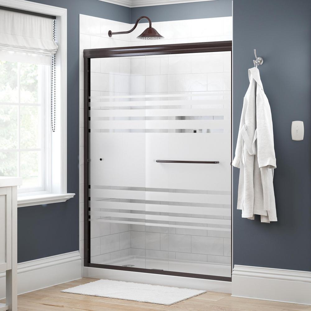 Simplicity 60 in. x 70 in. Semi-Frameless Traditional Sliding Shower Door in Bronze with Clear Glass