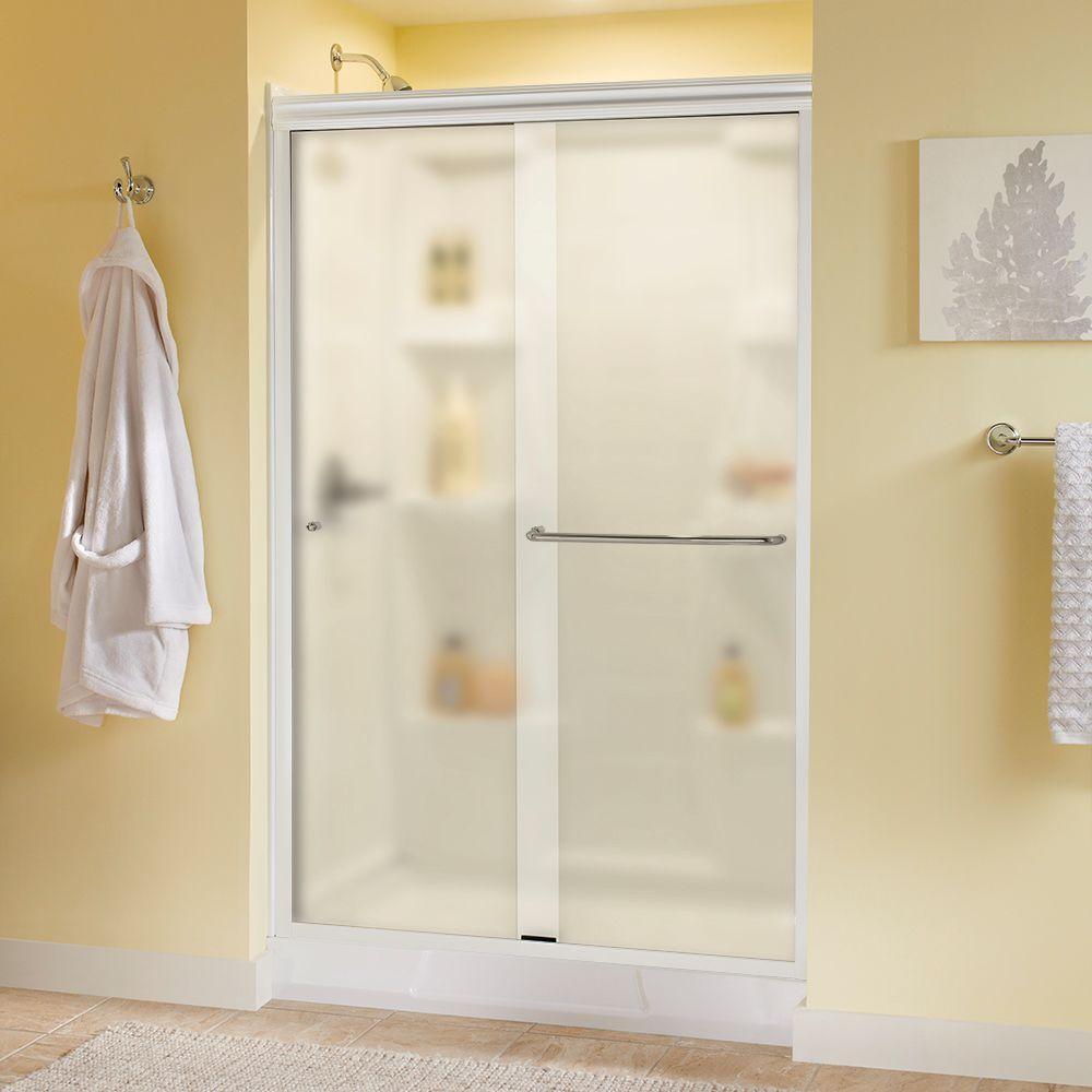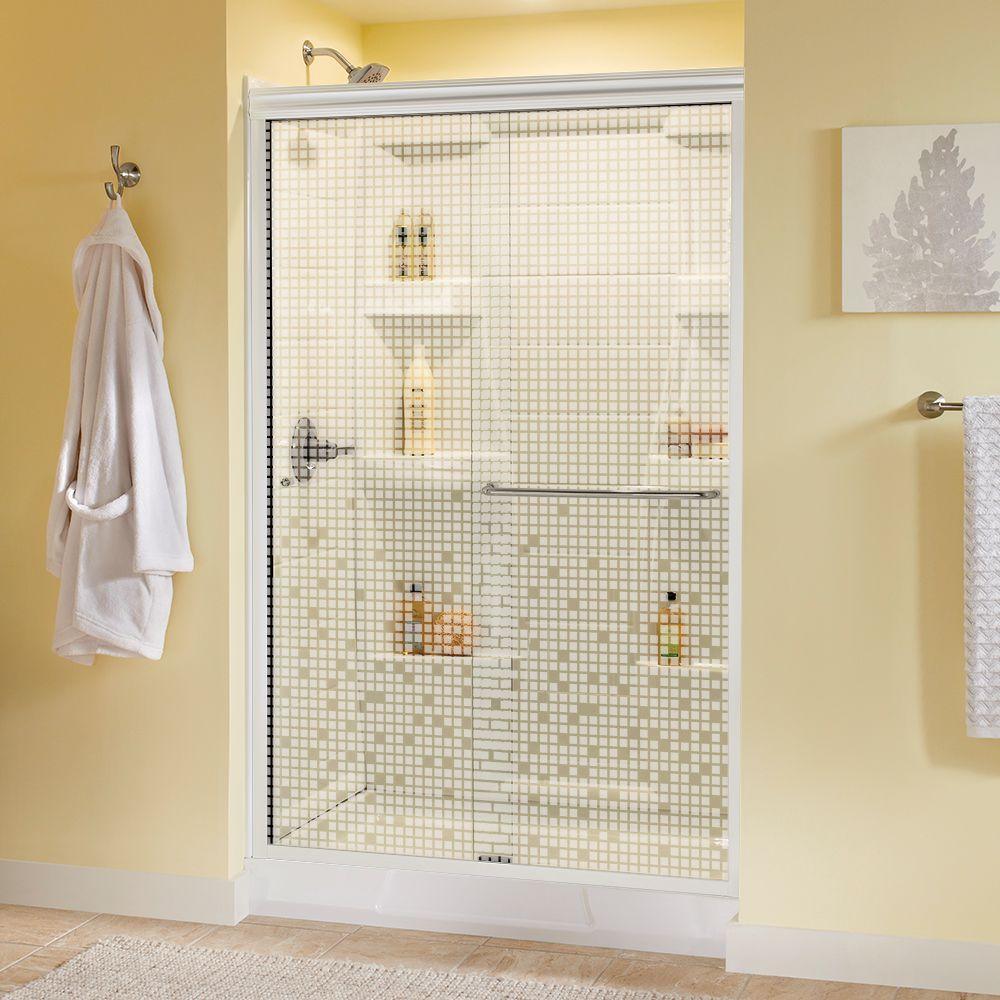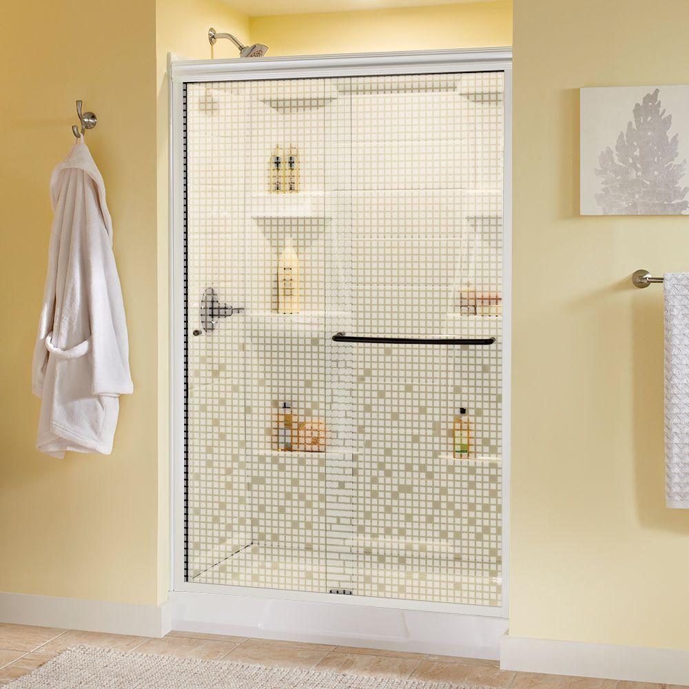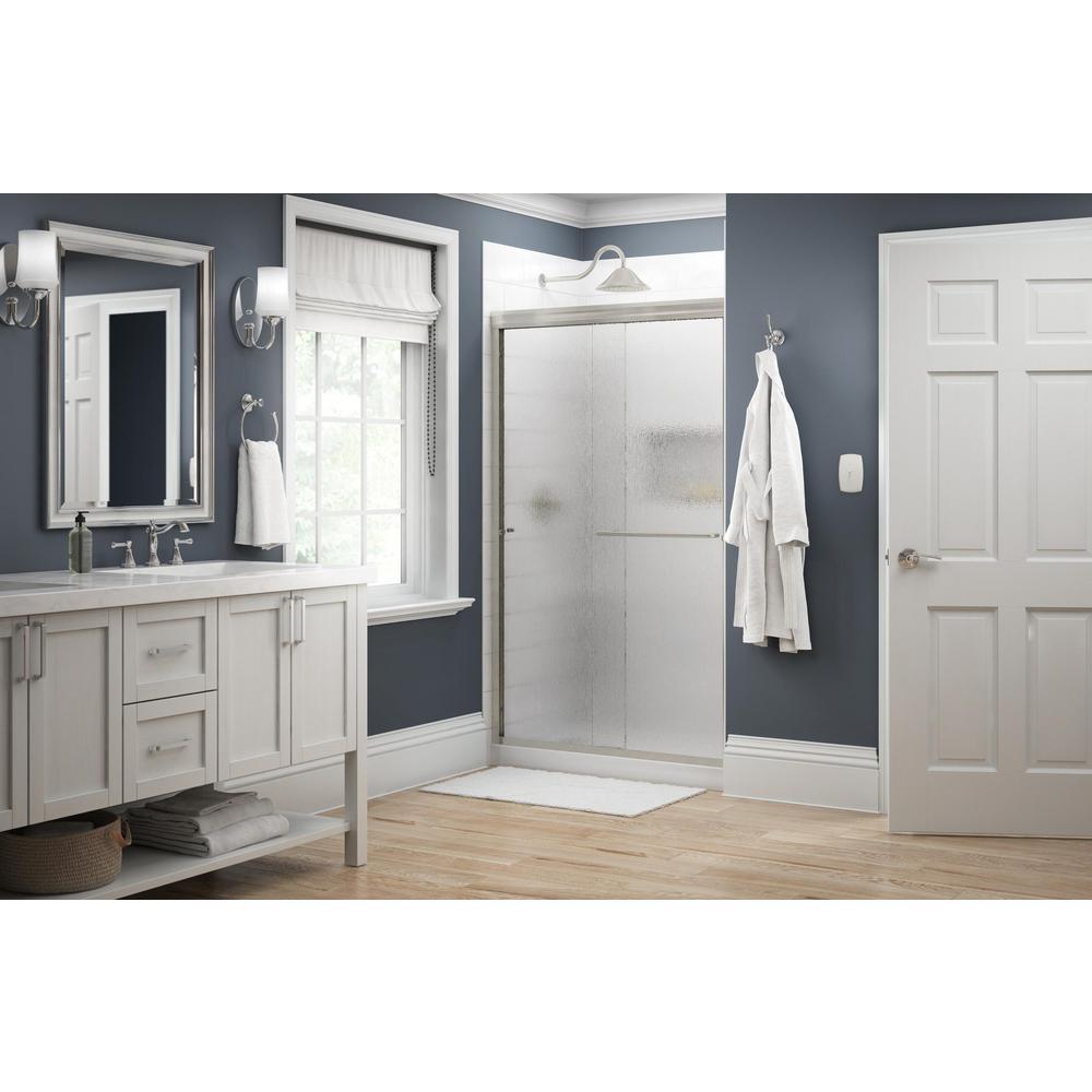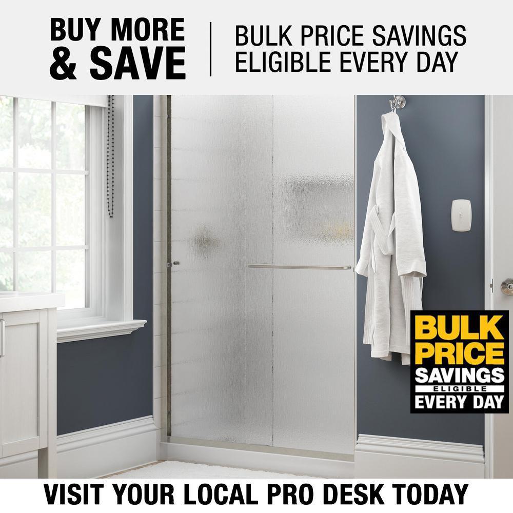 Whether you’re looking for a moderate DIY project or working on a bathroom remodel, upgrading your bathroom with a new sliding shower door is easy with the Delta 1-2-3 custom sliding shower door program. Delta’s custom glass shower door program offers 1000s of design combinations by choosing your glass shower panels, shower door track, and shower door handles to build a unique, personalized glass shower door. Simple and classic, the Traditional shower door track in nickel features a reversible top track with two unique profiles that offer uncompromised quality and value with a design that’s familiar and balanced. Make a statement with standard 1/4 in. ANSI certified tempered glass shower panels, featuring a textured surface that resembles water running down the panels for a spa-like feel and the most privacy. The Simplicity sliding shower door handle with knobs features a convenient towel bar for extra bathroom storage and two interior knobs for extra showering space in a simple design silhouette that beautifully combines form and function.