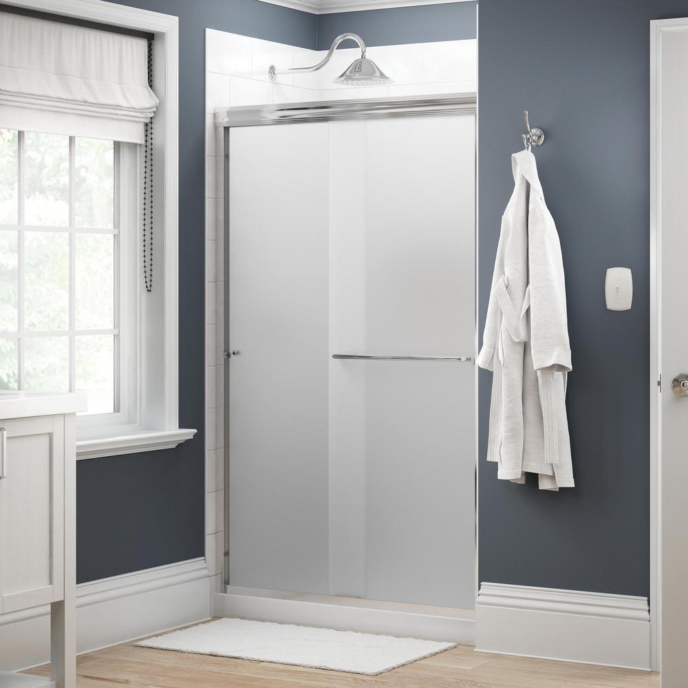 • Traditional sliding shower door designed to accommodate out-of-plumb (uneven, not vertically level) conditions totaling 3/8 in.