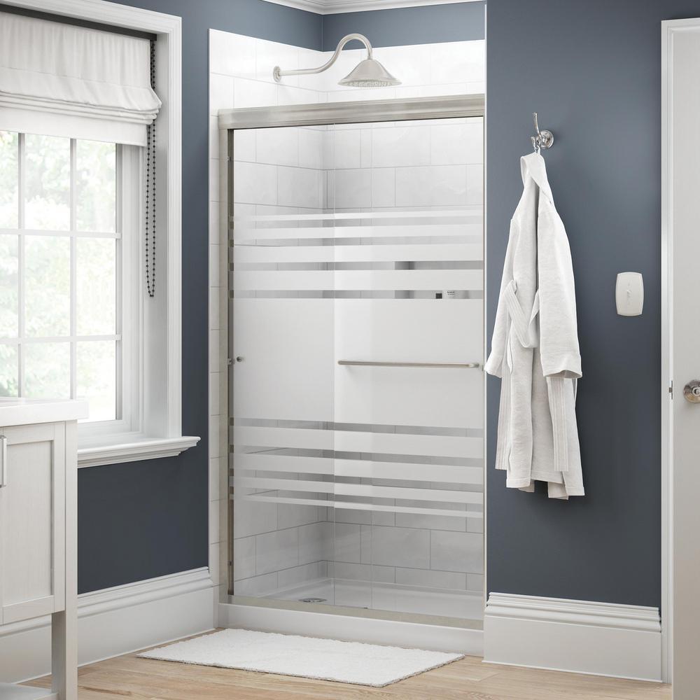 Simplicity 48 in. x 70 in. Semi-Frameless Traditional Sliding Shower Door in Nickel with Rain Glass