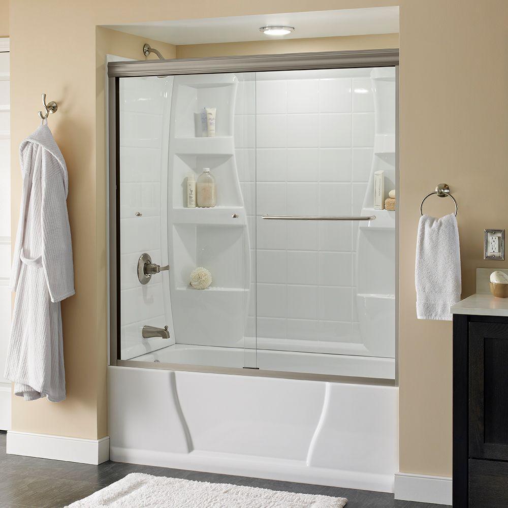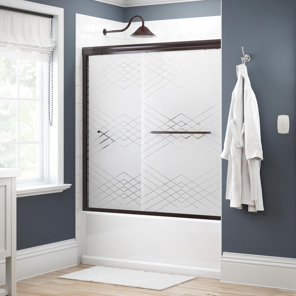 • Traditional sliding bathtub door designed to accommodate out-of-plumb (uneven, not vertically level) conditions totaling 3/8 in.
