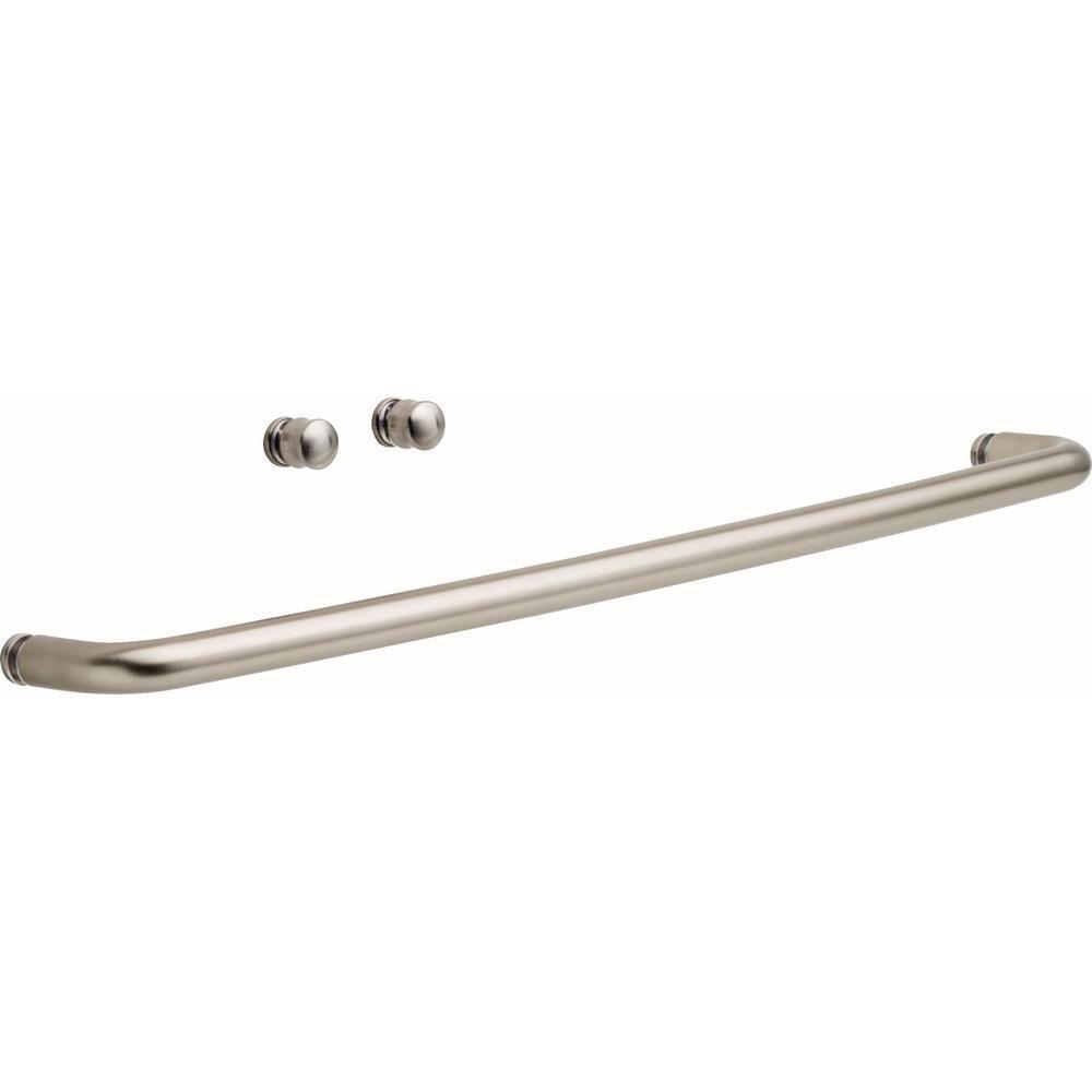 Whether you’re looking for a moderate DIY project or working on a bathroom remodel, upgrading your bathroom with a new sliding shower door is easy with the Delta 1-2-3 custom sliding shower door program. Delta’s custom glass shower door program offers 1000s of design combinations by choosing your glass shower panels, shower door track, and shower door handles to build a unique, personalized glass shower door. Simple and classic, the Traditional bathtub door track in nickel features a reversible top track with two unique profiles that offer uncompromised quality and value with a design that’s familiar and balanced. Show off your beautiful shower with standard 1/4 in. ANSI certified tempered glass shower panels, featuring Delta Spot Guard with a completely transparent look for a glass shower door that is both simple and elegant. The Simplicity sliding shower door handle with knobs features a convenient towel bar for extra bathroom storage and two interior knobs for extra showering space in a simple design silhouette that beautifully combines form and function.