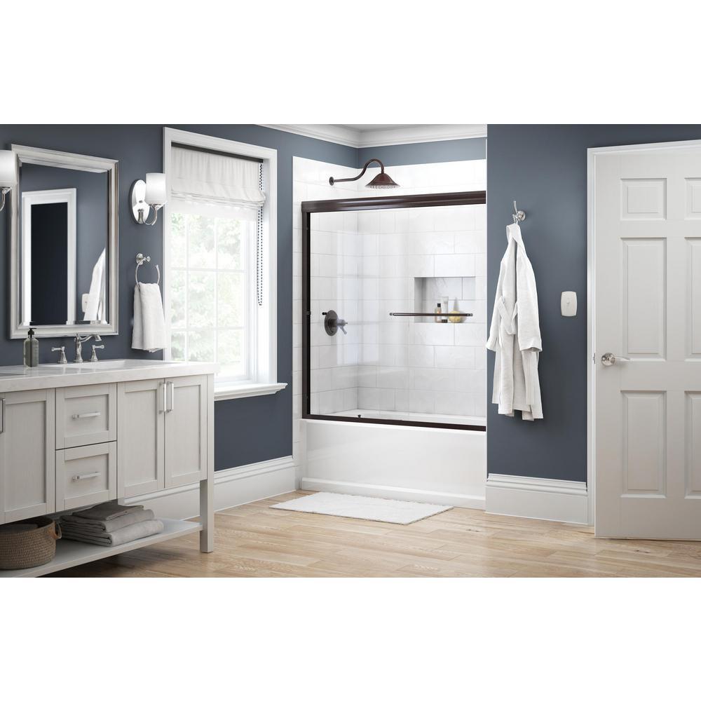 Simplicity 60 in. x 58-1/8 in. Semi-Frameless Traditional Sliding Bathtub Door in Bronze with Clear Glass