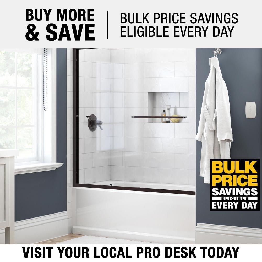 Whether you’re looking for a moderate DIY project or working on a bathroom remodel, upgrading your bathroom with a new sliding shower door is easy with the Delta 1-2-3 custom sliding shower door program. Delta’s custom glass shower door program offers 1000s of design combinations by choosing your glass shower panels, shower door track, and shower door handles to build a unique, personalized glass shower door. Simple and classic, the Traditional bathtub door track in bronze features a reversible top track with two unique profiles that offer uncompromised quality and value with a design that’s familiar and balanced. Show off your beautiful shower with standard 1/4 in. ANSI certified tempered glass shower panels, featuring Delta Spot Guard with a completely transparent look for a glass shower door that is both simple and elegant. The Simplicity sliding shower door handle with knobs features a convenient towel bar for extra bathroom storage and two interior knobs for extra showering space in a simple design silhouette that beautifully combines form and function.