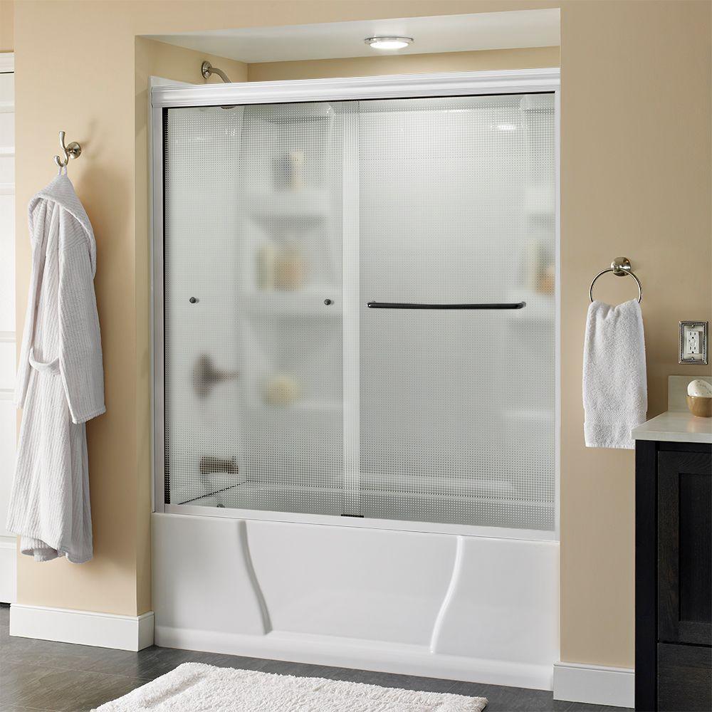 Whether you’re looking for a moderate DIY project or working on a bathroom remodel, upgrading your bathroom with a new sliding shower door is easy with the Delta 1-2-3 custom sliding shower door program. Delta’s custom glass shower door program offers 1000s of design combinations by choosing your glass shower panels, shower door track, and shower door handles to build a unique, personalized glass shower door. Simple and classic, the Traditional bathtub door track in bronze features a reversible top track with two unique profiles that offer uncompromised quality and value with a design that’s familiar and balanced. Make a statement with standard 1/4 in. ANSI certified tempered glass shower panels, featuring a textured surface that resembles water running down the panels for a spa-like feel and the most privacy. The Simplicity sliding shower door handle with knobs features a convenient towel bar for extra bathroom storage and two interior knobs for extra showering space in a simple design silhouette that beautifully combines form and function.