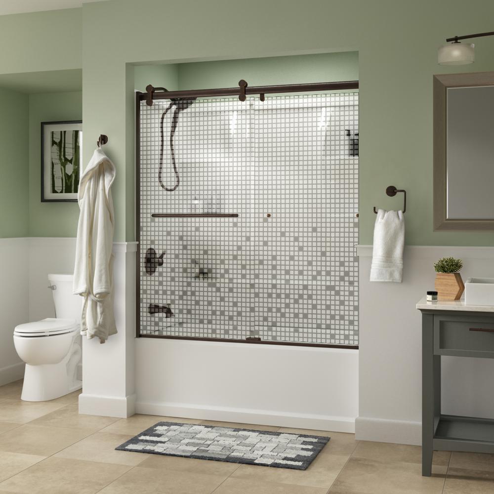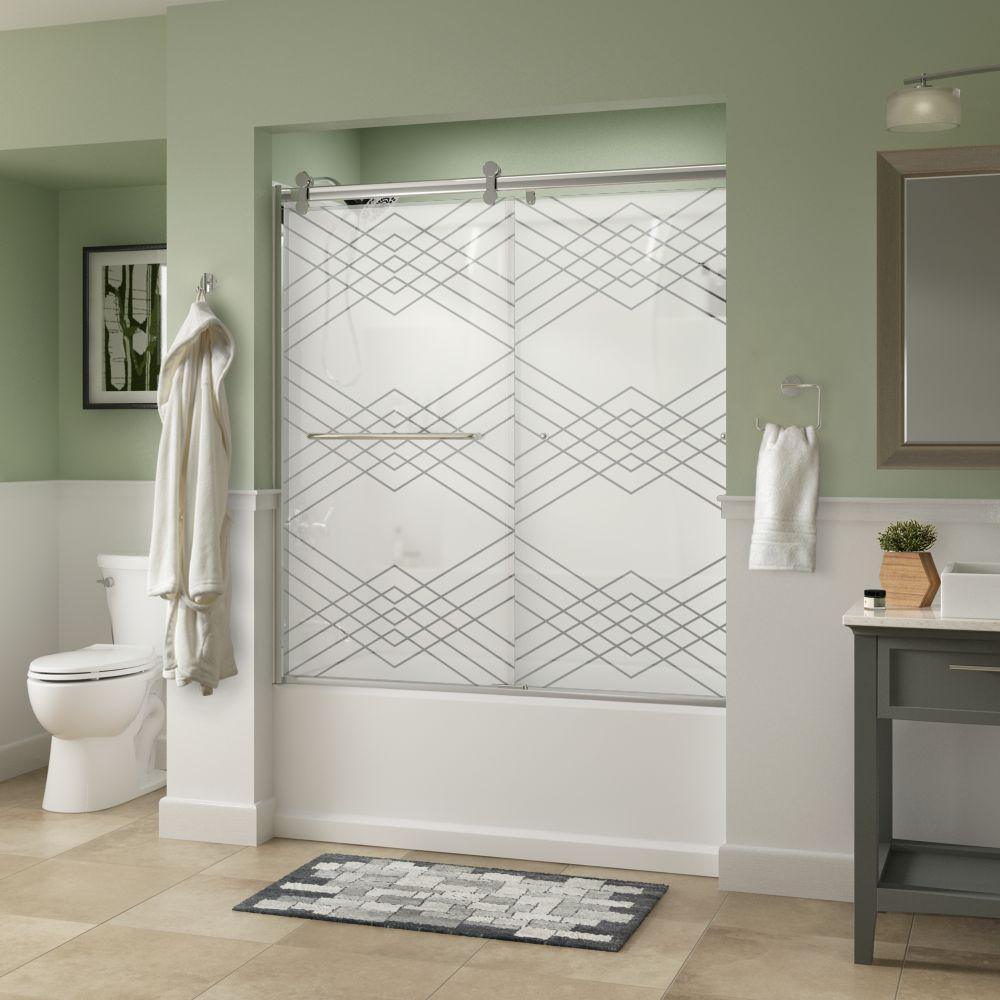 Whether you’re looking for a moderate DIY project or working on a bathroom remodel, upgrading your bathroom with a new sliding shower door is easy with the Delta 1-2-3 custom sliding shower door program. Delta’s custom glass shower door program offers 1000s of design combinations by choosing your glass shower panels, shower door track, and shower door handles to build a unique, personalized glass shower door. Inspired by the trendy barn door style, the Contemporary bathtub door track in chrome is sleek and modern with exposed rollers for the perfect balance of industrial and contemporary design. Make a statement with standard 1/4 in. ANSI certified tempered glass shower panels, featuring a smooth and completely frosted glass with a soft, satin-like look that is more private. The Simplicity sliding shower door handle with knobs features a convenient towel bar for extra bathroom storage and two interior knobs for extra showering space in a simple design silhouette that beautifully combines form and function.