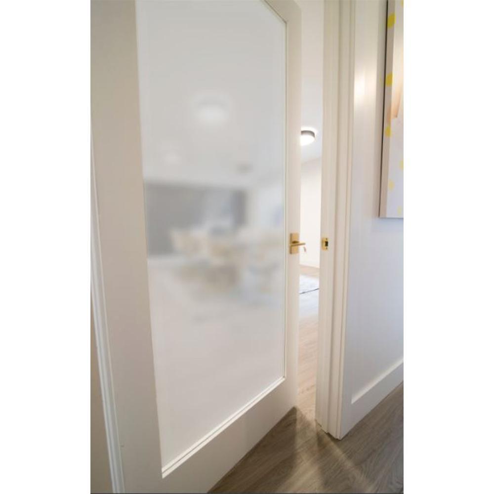32 in. x 96 in. 1-Lite Satin Etch Solid Core MDF Primed Interior Door Slab