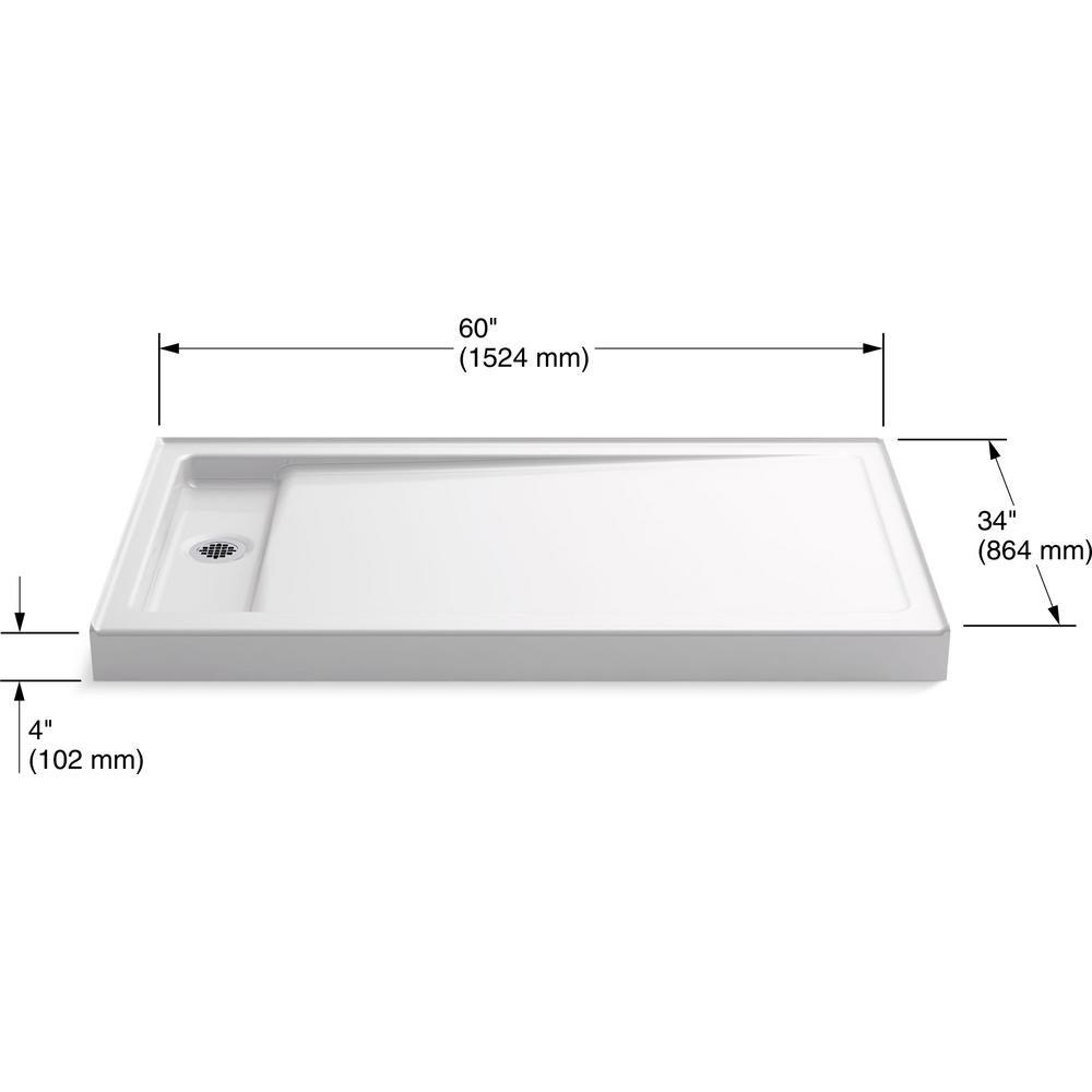 The Bellwether 60 in. x 34 in. shower base features KOHLER enameled cast iron construction for unmatched durability and ease of maintenance. The left offset drain is designed for easy 60 in. x 30 in. bath replacement. Add a removable cover over the recessed drain for a finished look.