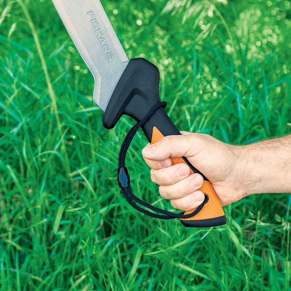 Designed for fast, powerful performance, our Machete offers a better way tame the fast-growing vegetation in your yard and garden, especially when clearing large areas with wide swings. The ultra-sharp, rust-resistant blade is thoughtfully shaped for a wide range of tasks, helping to speed your clearing while leaving one hand free to pile cuttings. The comfortable performance handle design features an intelligent texture pattern and lets you choke up for precision work, grip the middle for general use or grip the end to swing with maximum force. The long blade of our Machete includes a specially curved profile that helps prevent the blade from getting stuck when you’re powering through thick brush.