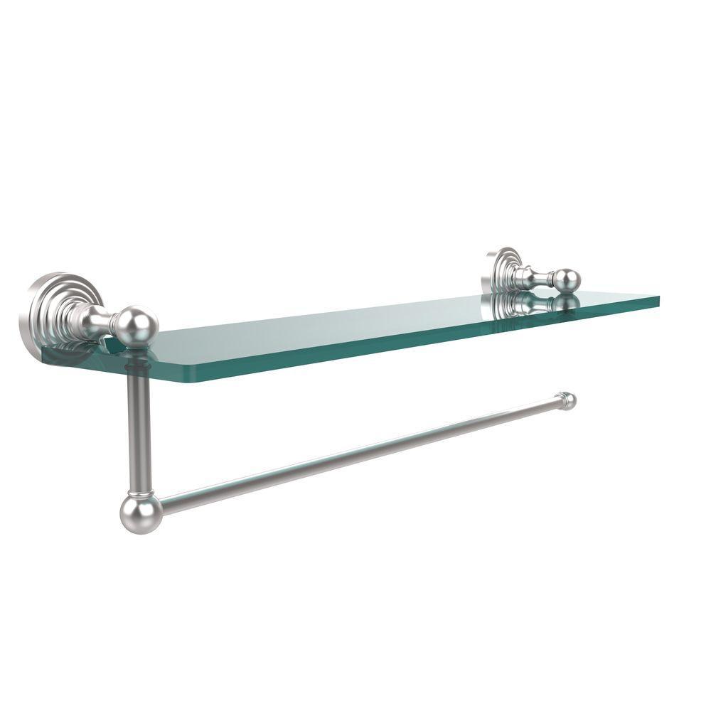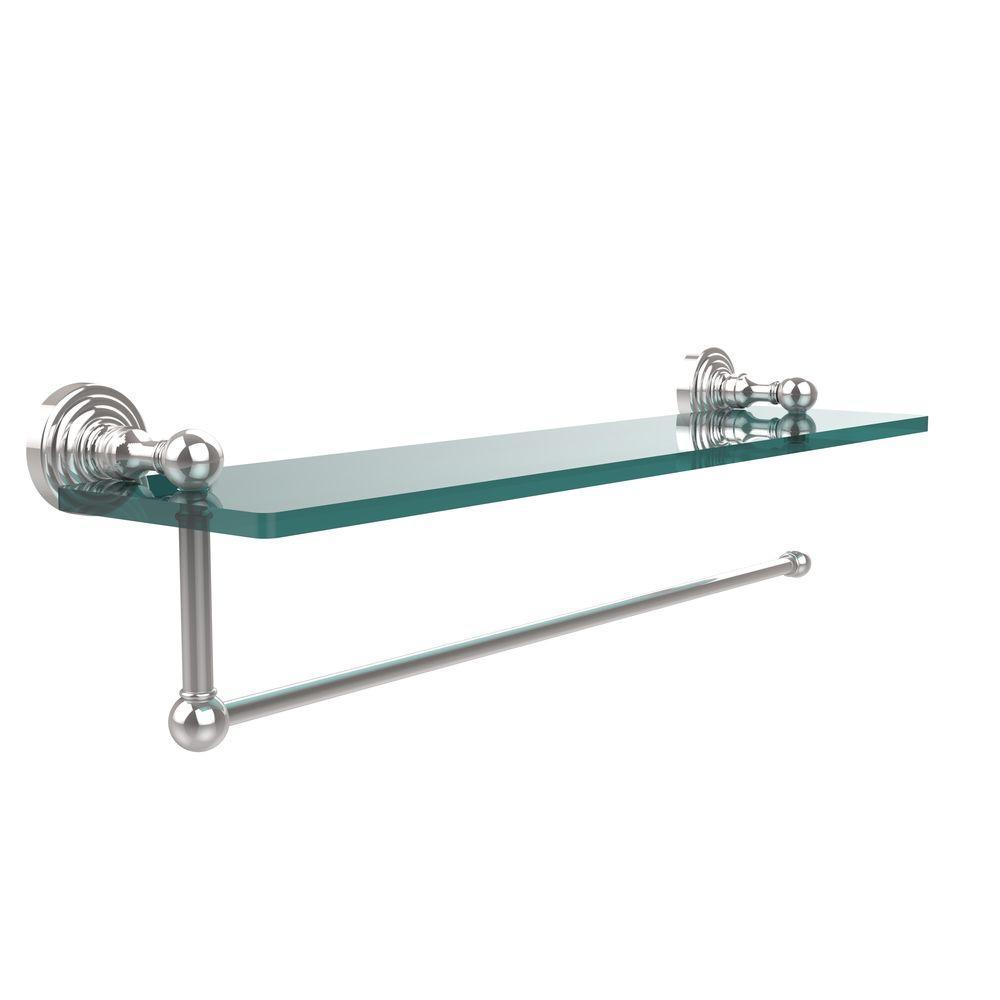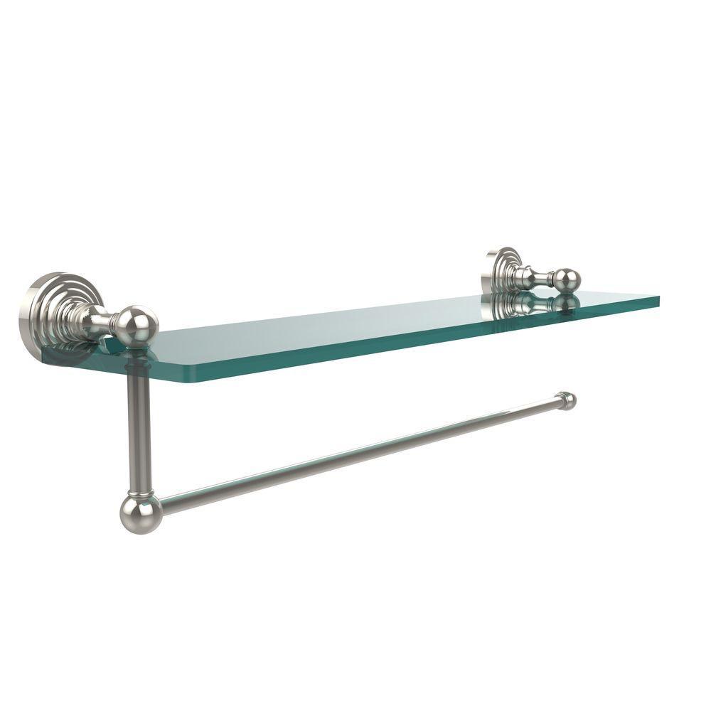 Waverly Place 16 in. L x 5 in. H x 5 in. W Paper Towel Holder with Clear Glass Shelf in Satin Nickel