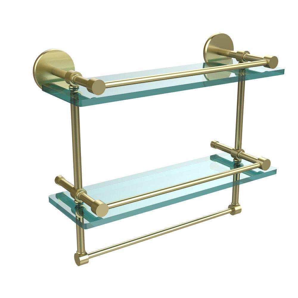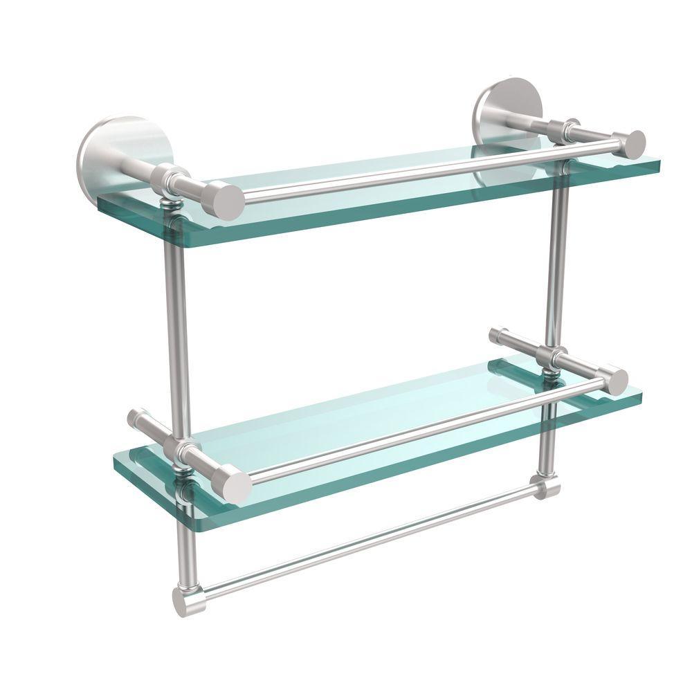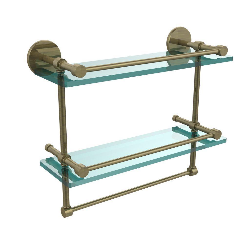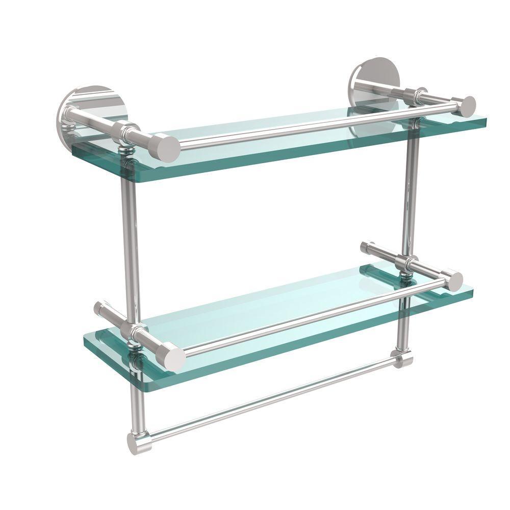 16 in. L x 12 in. H x 5 in. W 2-Tier Gallery Clear Glass Bathroom Shelf with Towel Bar in Matte Black