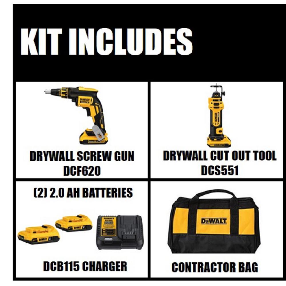 The DEWALT DCK263D2 Cordless Combo Kit contains a brushless drywall screwdriver and cutout tool. This combo kit is ideal for most drywall applications. Not only can you hang the drywall but also cut it out.