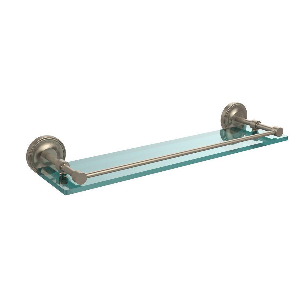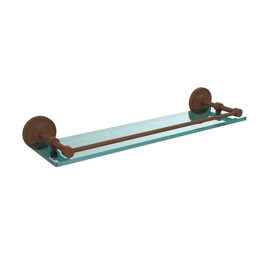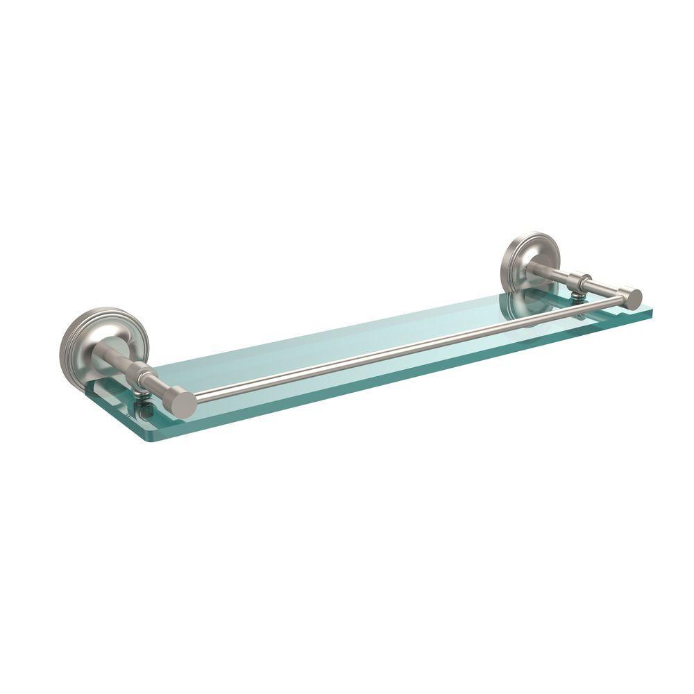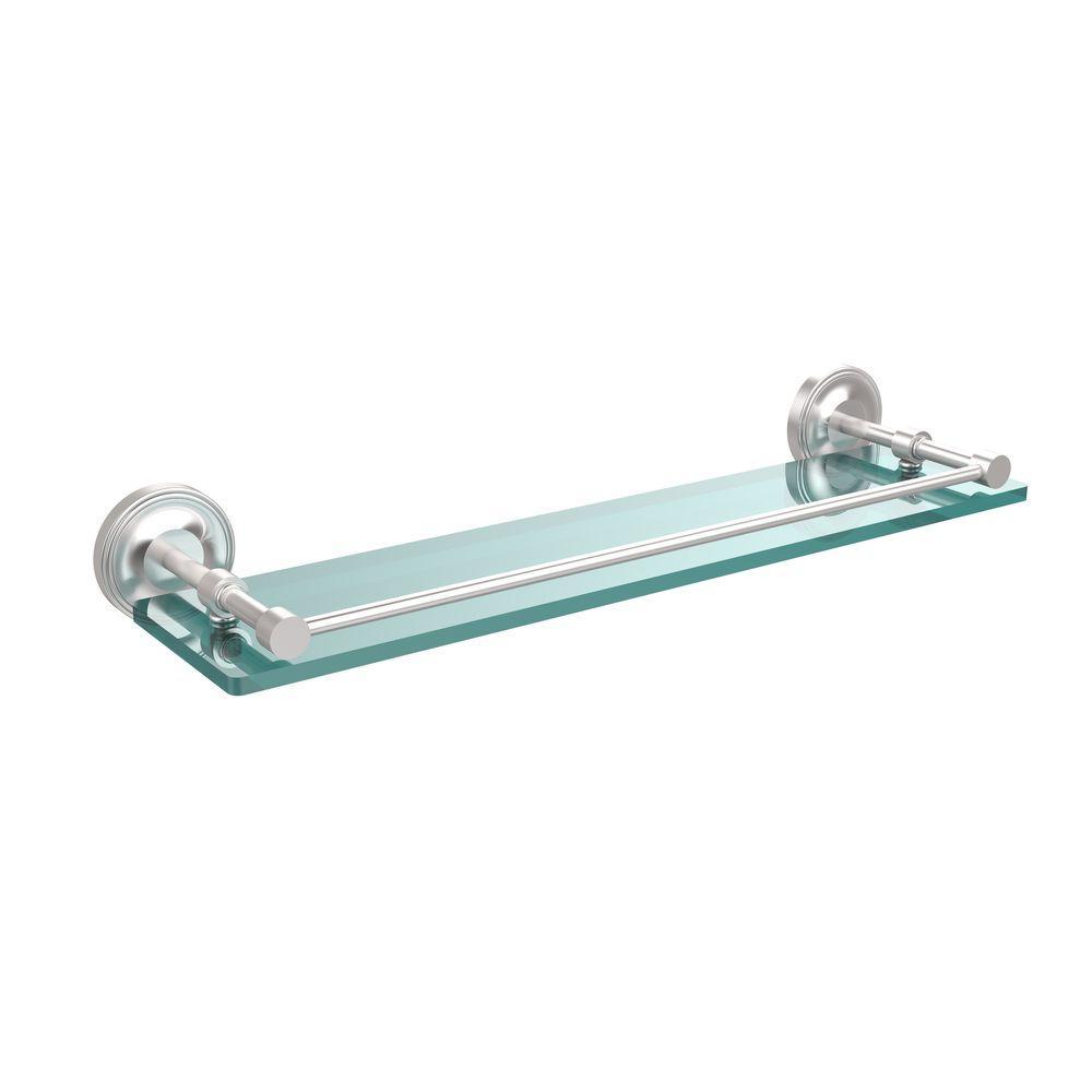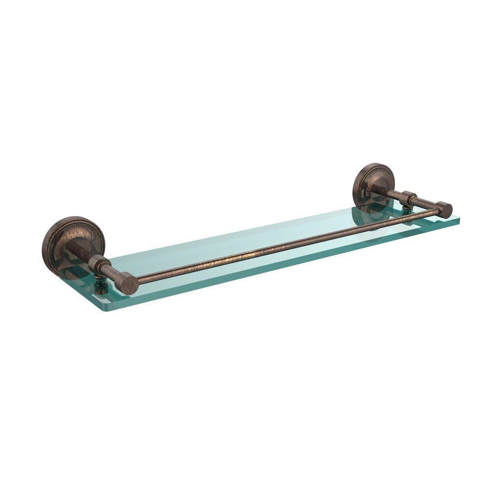 • Prestige Regal 22 in. L x 3 in. H x 5 in. W Clear Glass Bathroom Shelf with Gallery Rail provides ample space for storing essentials