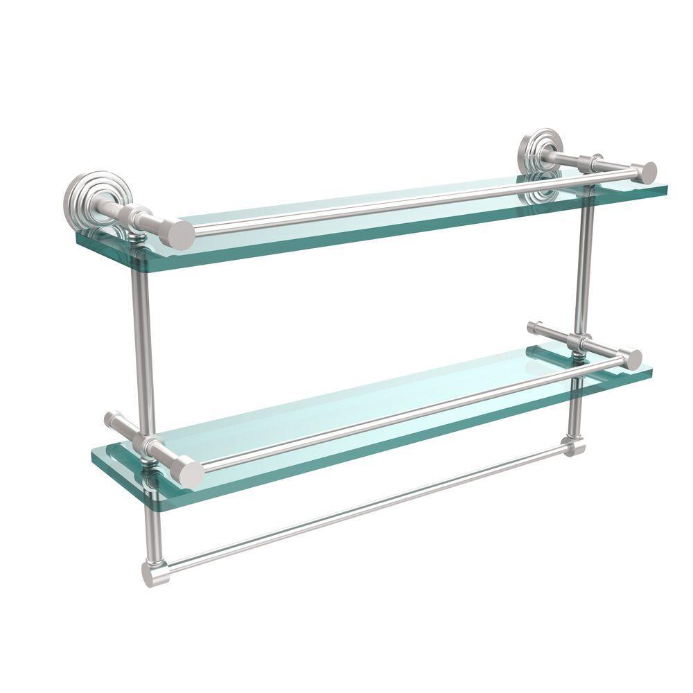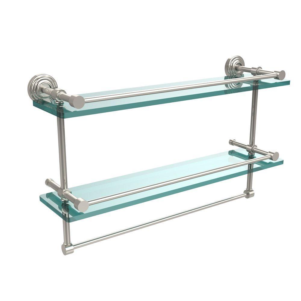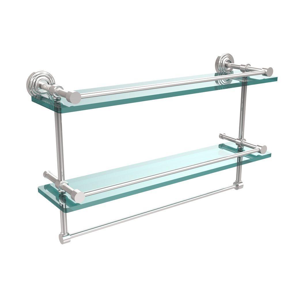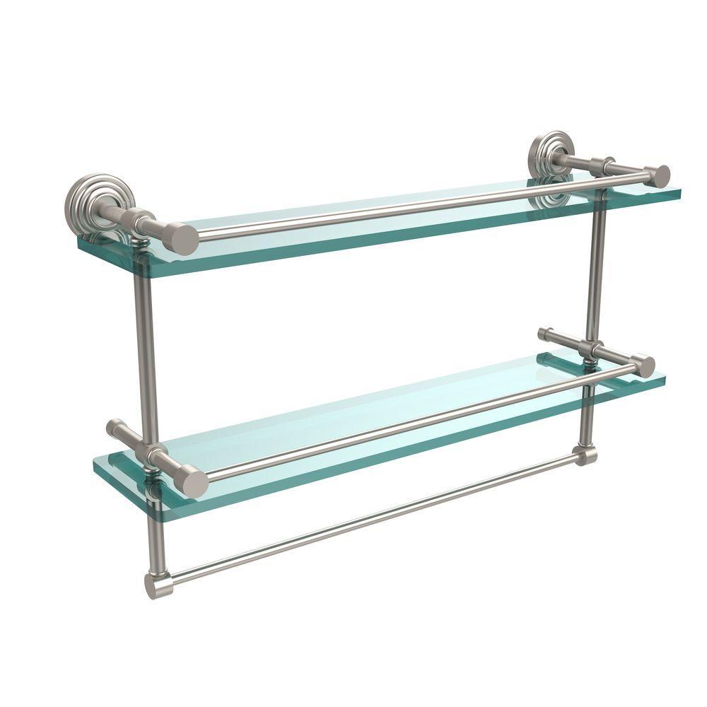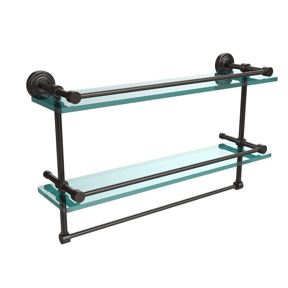 22 in. L x 12 in. H x 5 in. W 2-Tier Gallery Clear Glass Bathroom Shelf with Towel Bar in Oil Rubbed Bronze