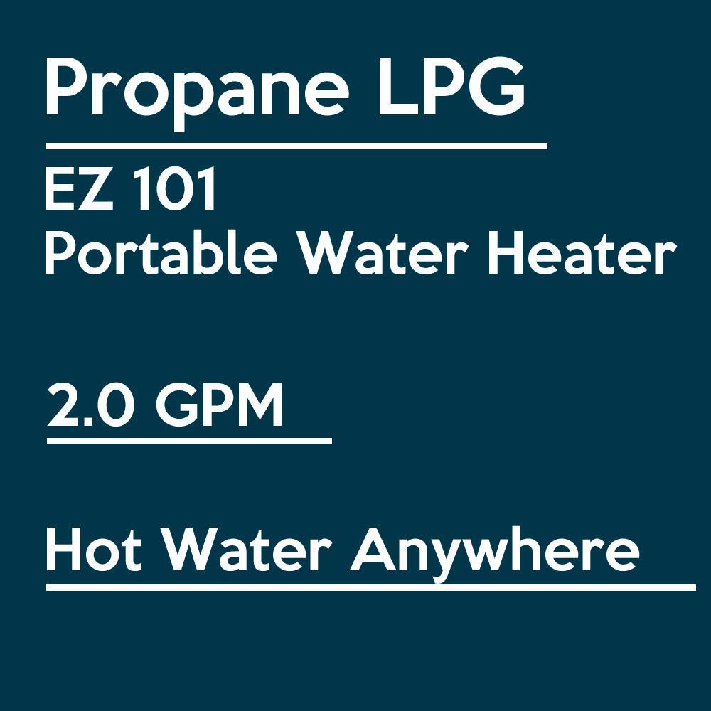 The EZ 101 is a portable propane powered tankless water heater that allows for quick and easy hot water anywhere. With its ability to heat a continuous water flow, RV and camp site users rave about the ability to take shower, after shower, after shower. No longer will RVers be plagued by the short shower times permitted when using a small tank type water heater. Featuring easy to use dials on the front of the heater, most users can have the unit up and running in less than 15 minutes. This unit is designed for outdoor installations, but if installed indoors, it must be installed in a room containing at least 2000 Cubic Feet of combustion air. When installed outdoors a vent pipe is not needed nor required unless otherwise specified by local codes.