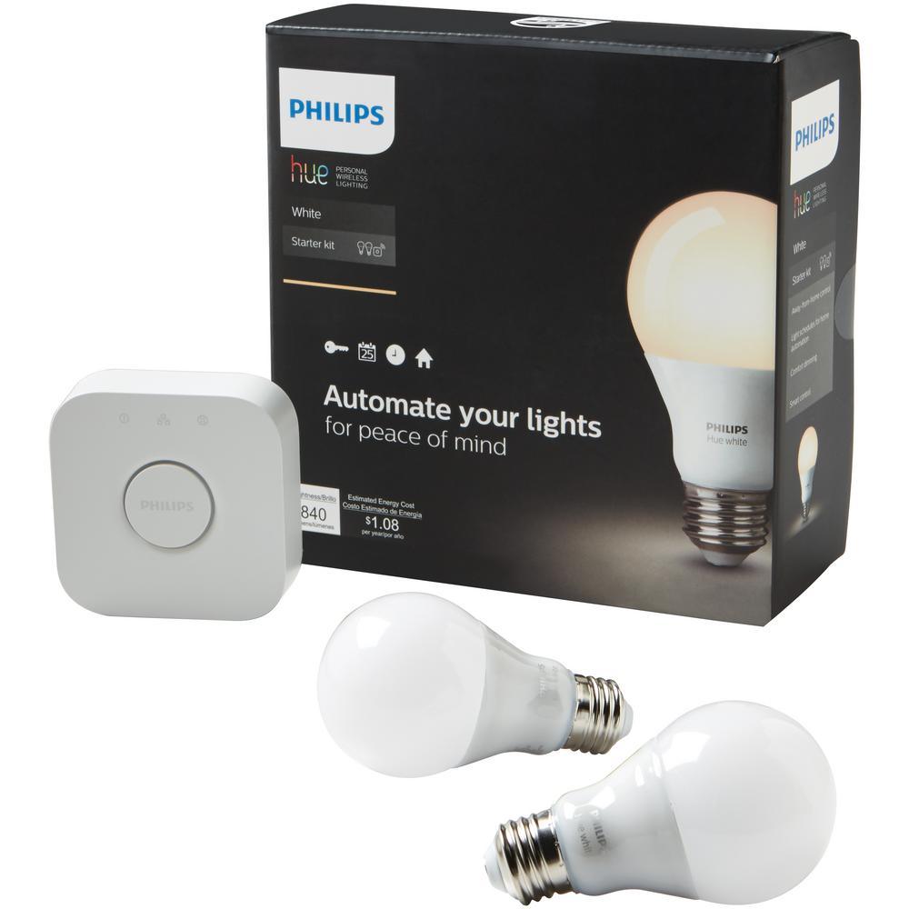 White A19 LED 60W Equivalent Dimmable Smart Wireless Lighting Starter Kit (2 Bulbs and Bridge)