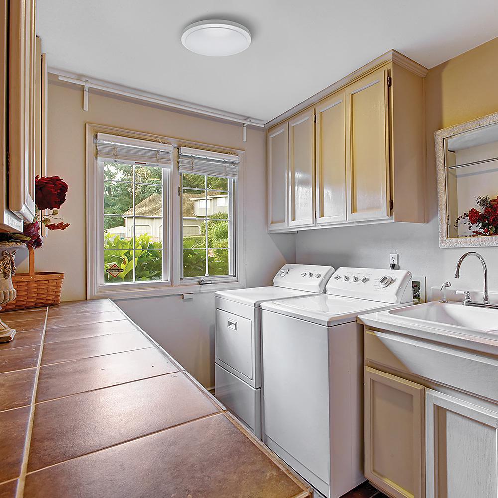 12 in. ceiling and wall flush mount fixture that you can control the temperature of light anywhere from 2700K to 5000K through the Wink system. Dims as well through the Wink system or with an approved wall dimmer. Can also be used as a source of lighting for home security while away from the house.