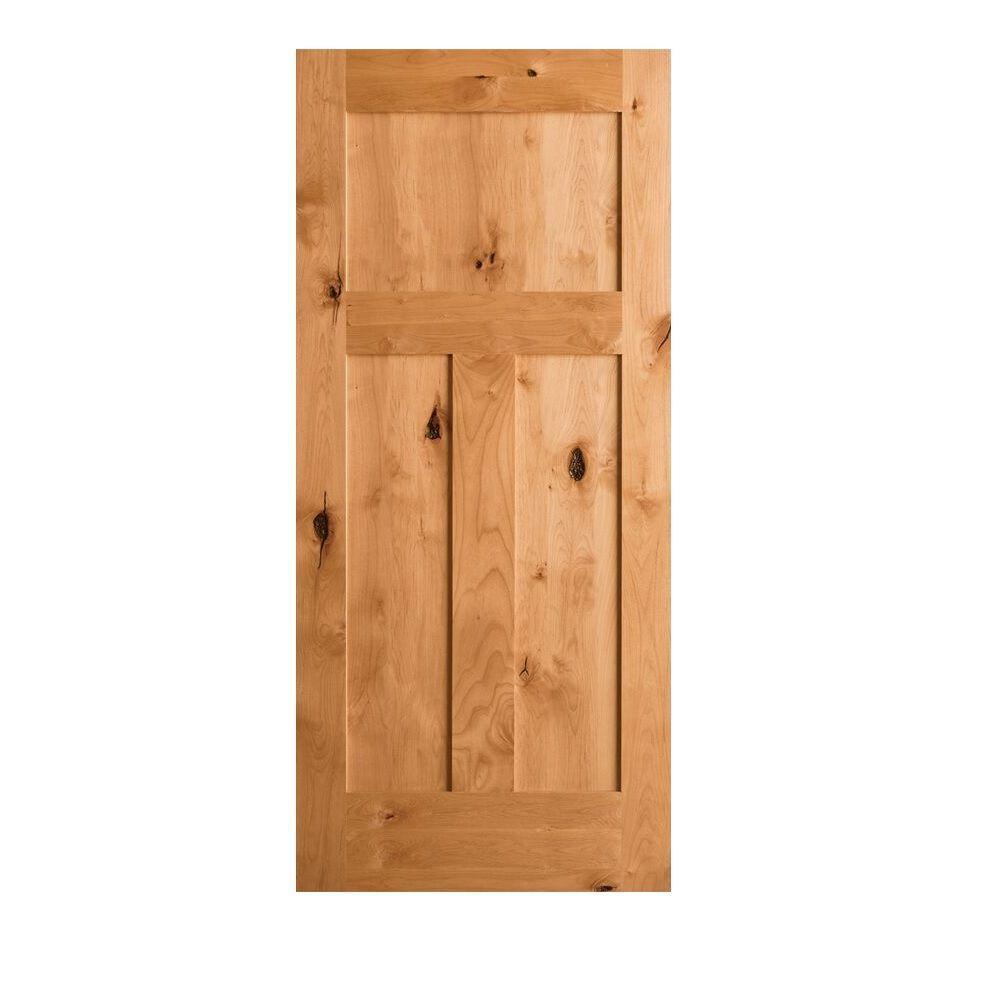 30 in. x 80 in. Krosswood Craftsman 3-Panel Shaker Solid Wood Core Rustic Knotty Alder Interior Door Slab