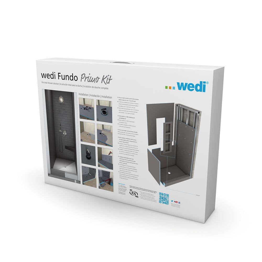 - Kit includes primo shower base, drain kit, six 3 ft. x 5 ft. x 1/2 in. wedi building panels, wedi Full Foam Curb LEAN, Flexi and Mixing Valve Collars, fasteners and joint sealant to cover 3 walls (2 short, 1 long) up to 80 in. tall in the shower