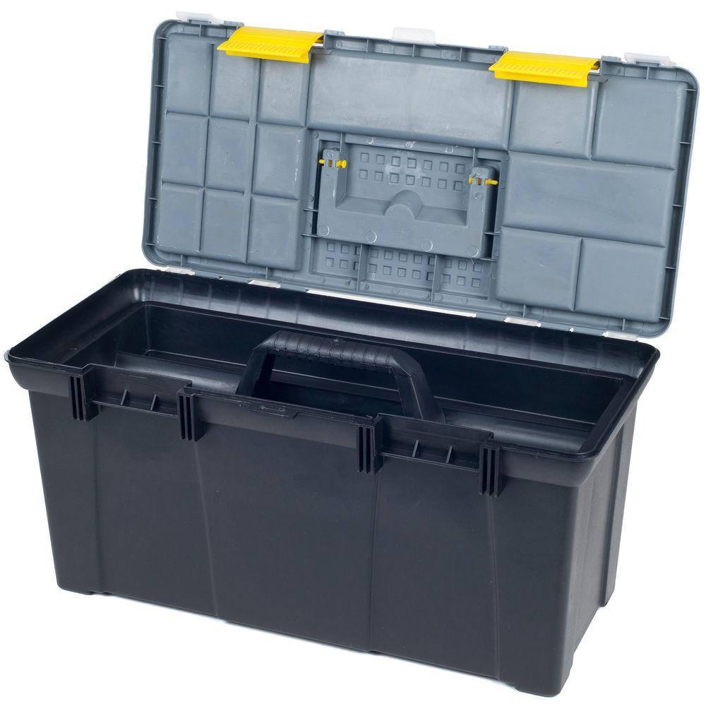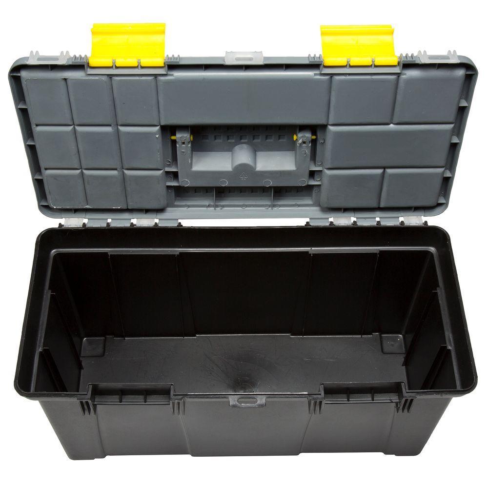 • Medium tool box: removable tray: 14.75 in. x 6.75 in.