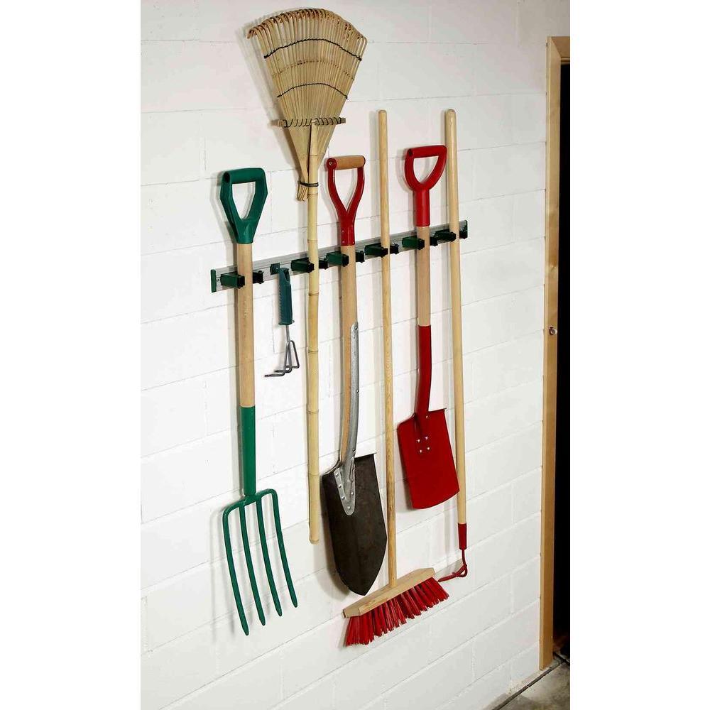 - Wall mounted tool holder to store and organize mops and brooms, rakes and shovels, hardware, sports gear and other unique items, quickly access, replace tools using 1-hand