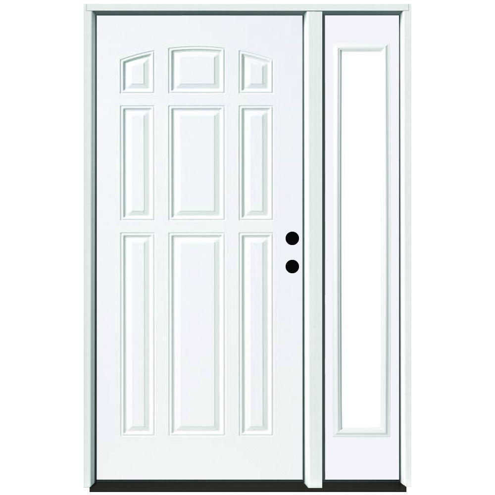 53 in. x 80 in. 9-Panel Primed White Right-Hand Steel Prehung Front Door with 14 in. Clear Glass Sidelite 4 in. Wall