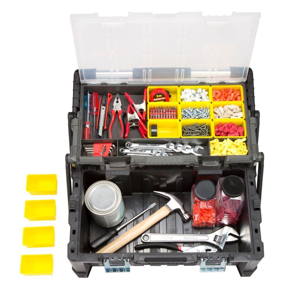 The unique cantilevered trays give you the reach and visibility needed for easy access to all of your parts and tools. Separate Clear-Top Lid provides access to the top Tier by itself without having to open the entire box. Not just for craftsmen, the Parts and Crafts Tiered Tool Box from Stalwart is perfect for crafters, artists and more.
