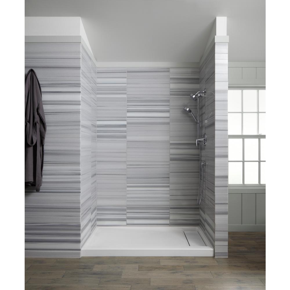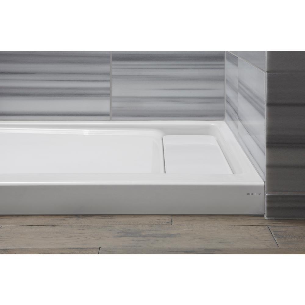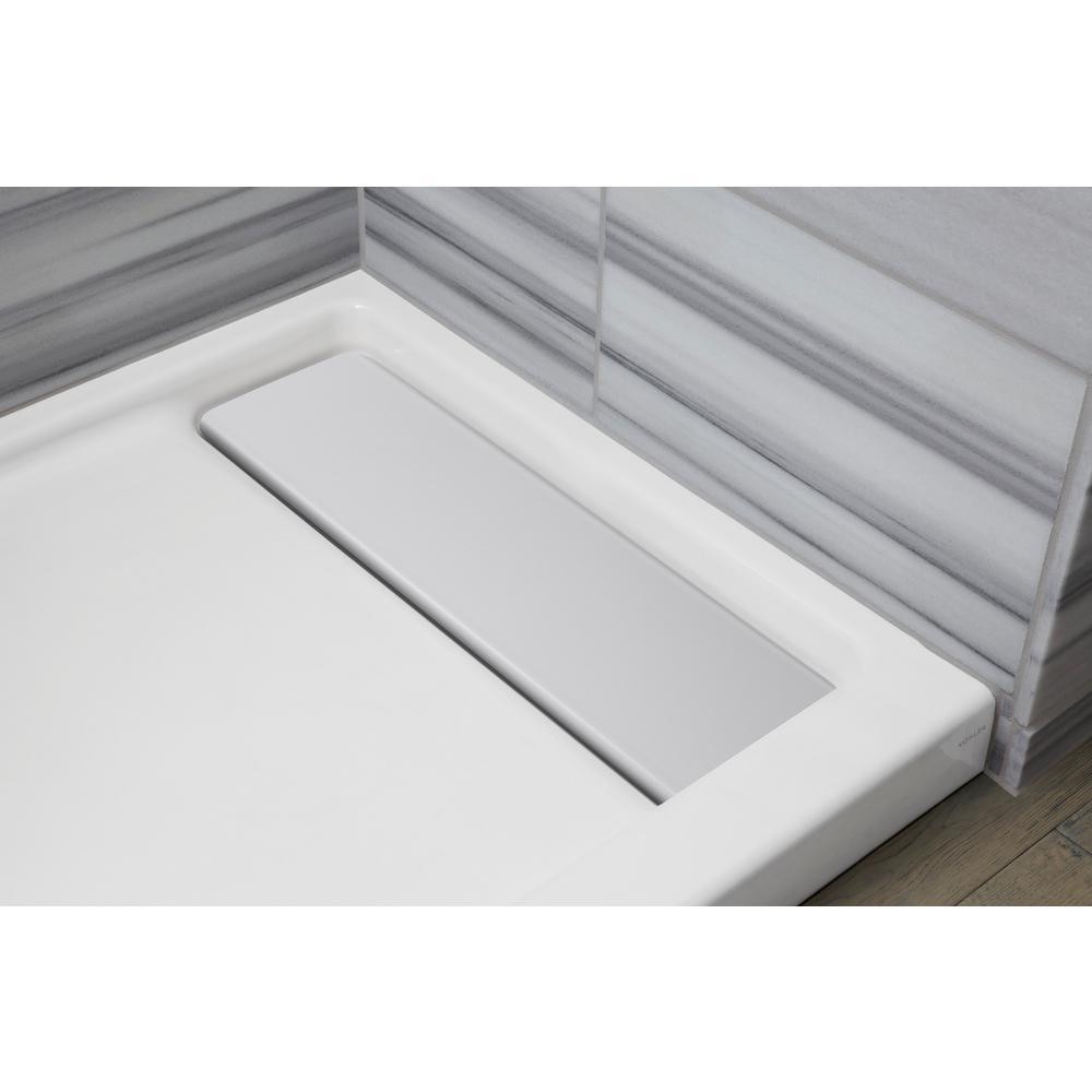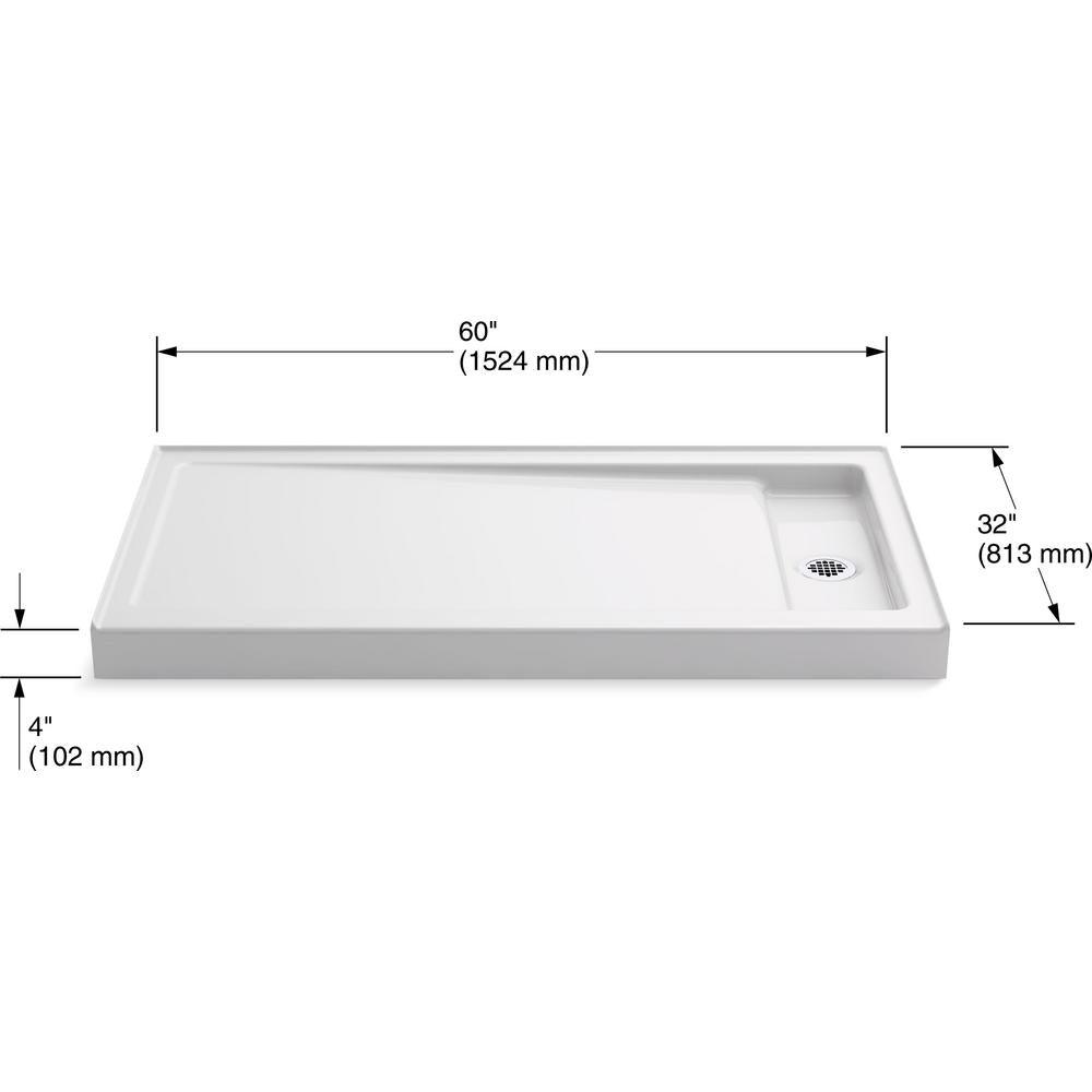 The Bellwether 60 in. x 32 in. shower base features KOHLER enameled cast iron construction for unmatched durability and ease of maintenance. The right centered drain is ideally designed for new construction. Add a removable cover over the recessed drain for a finished look.