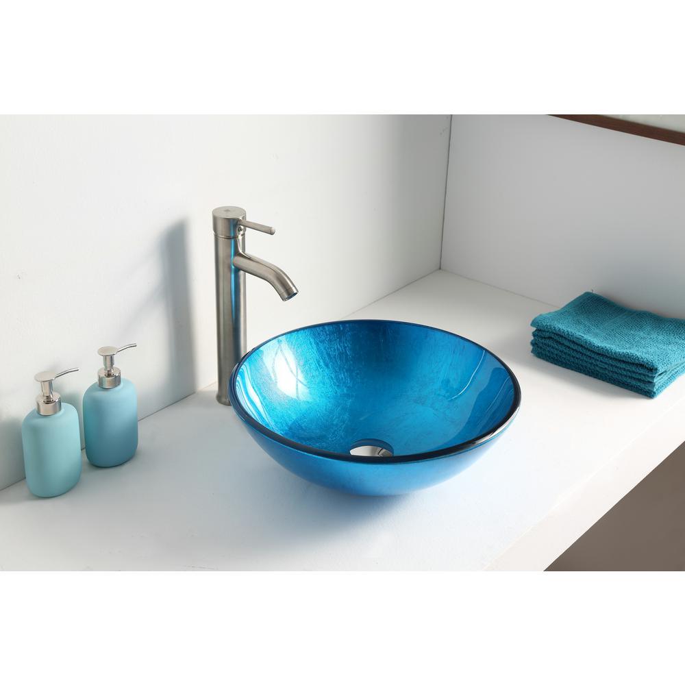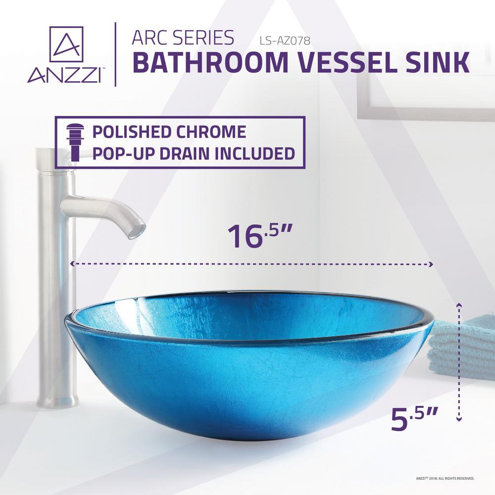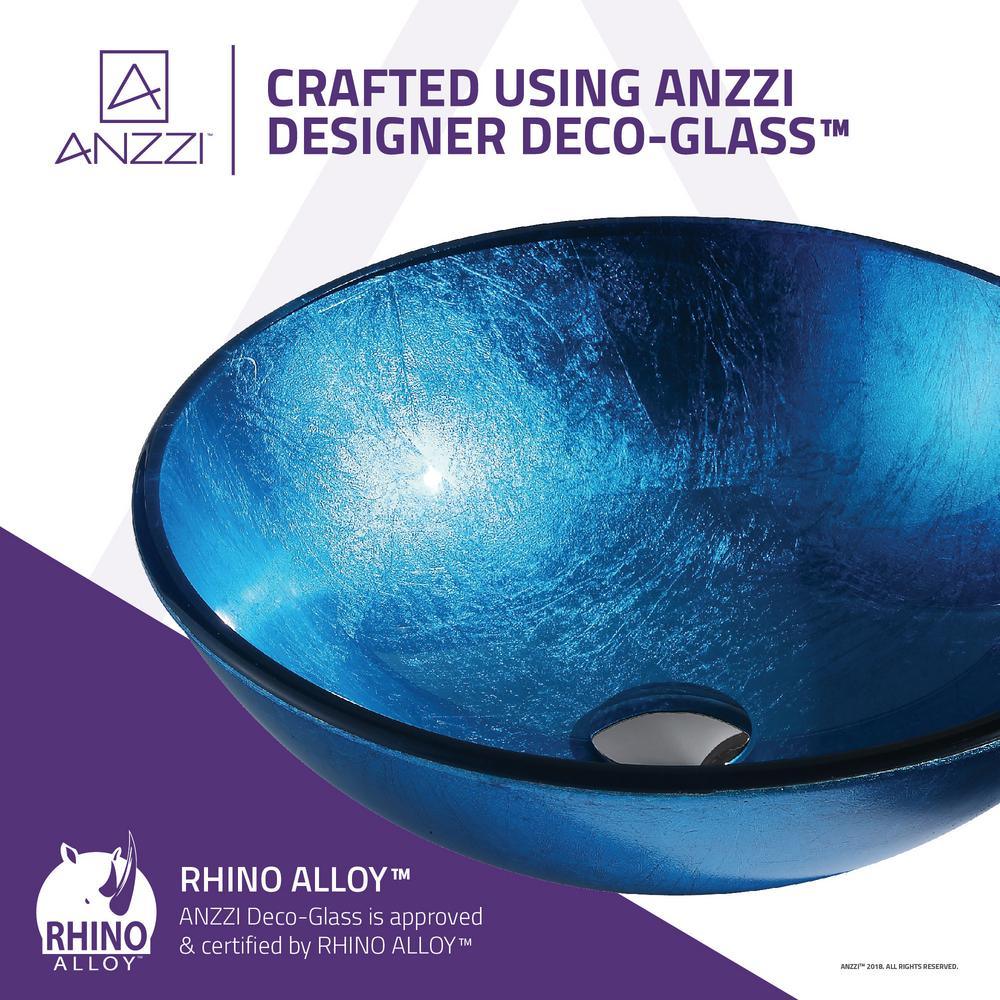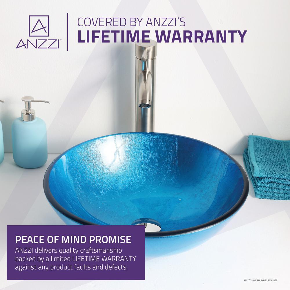 The ANZZI Arc Series sink is a traditionally crafted round vessel sink adorned in a Lustrous Light Blue Finish. Each ANZZI vessel sink if formed using Rhino Alloy certified high tempered Deco-Glass material. The result is a perfectly shaped dynamically captivating vessel centerpiece for any bathroom counter.
