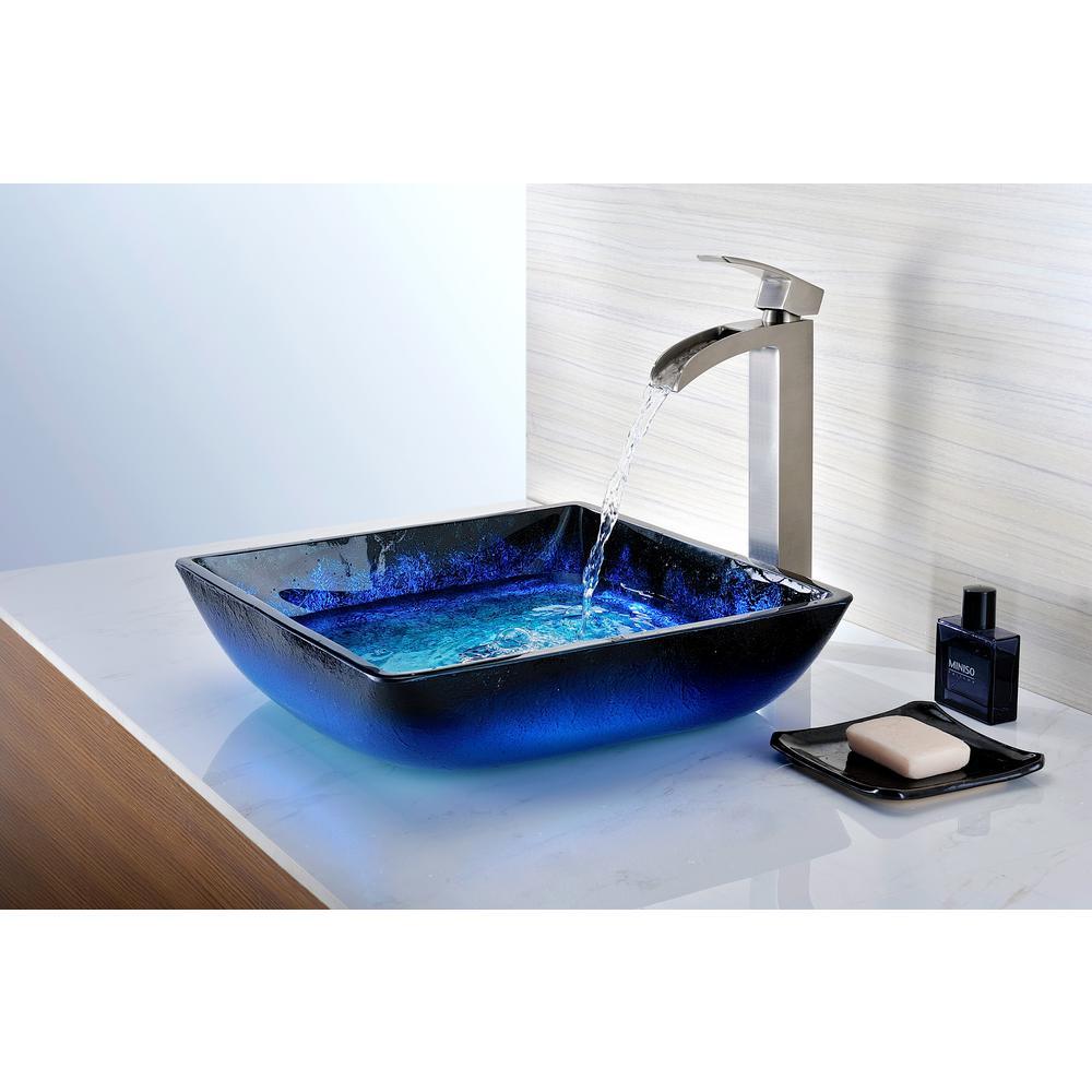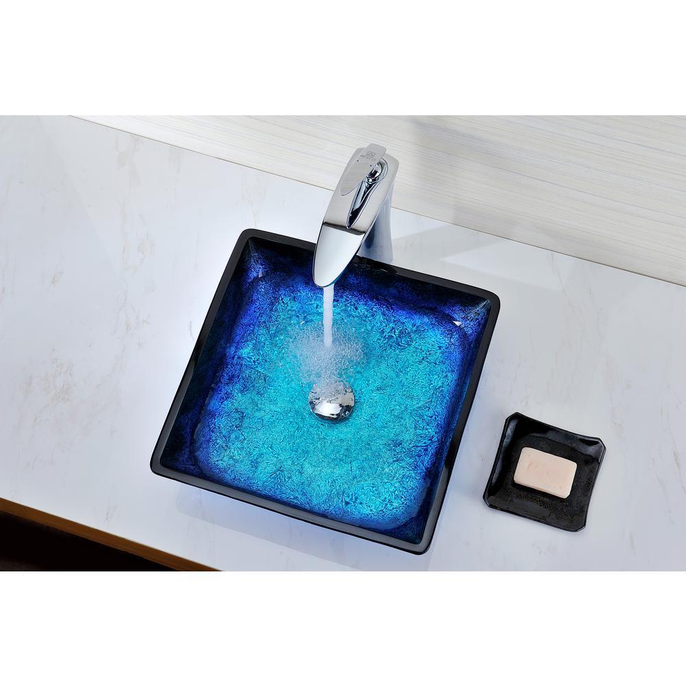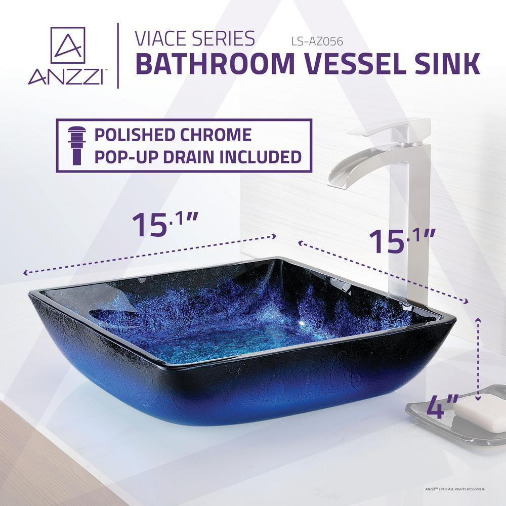 The ANZZI Viace Series sink is a traditionally crafted squared vessel sink adorned in a Blazing Blue Finish. Each ANZZI vessel sink if formed using Rhino Alloy certified high tempered Deco-Glass material. The result is a dynamically shaped and captivating vessel centerpiece for any bathroom counter.