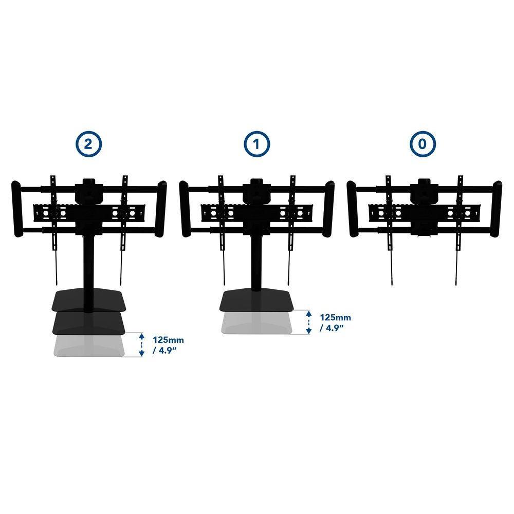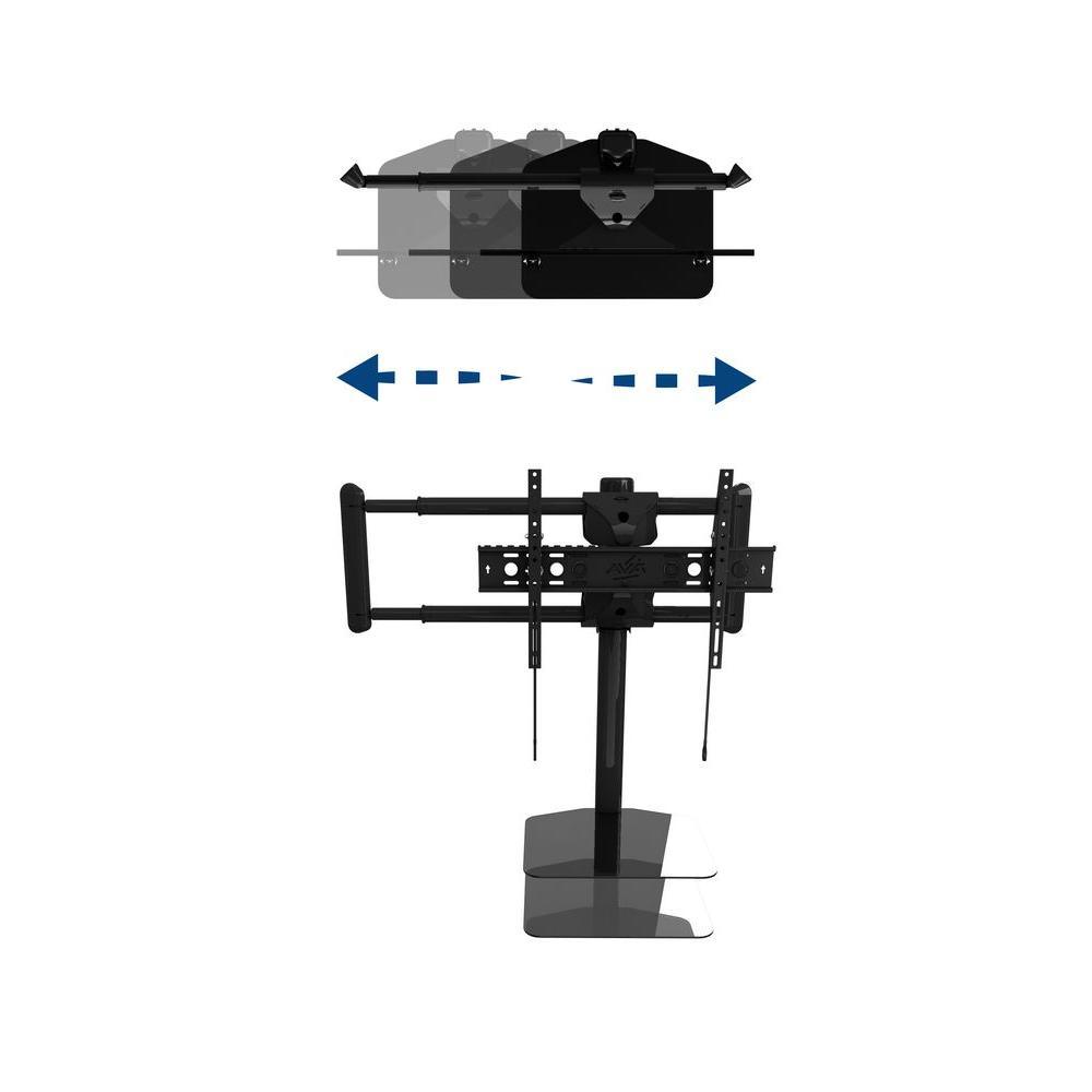 - Comes with 2 tempered glass (optional), floating shelves that move in tandem with the TV as 1 complete unit