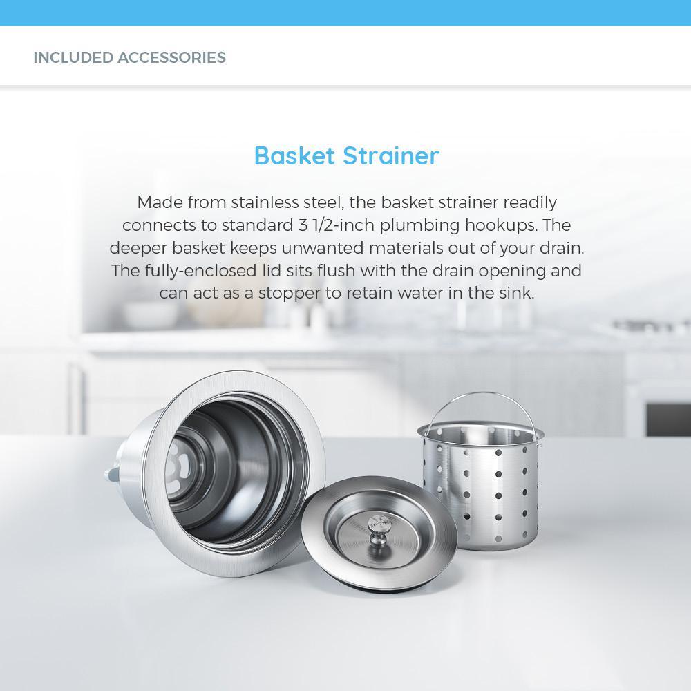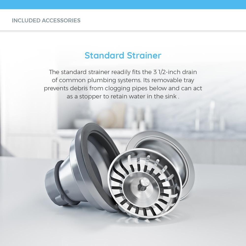 • Bundle - 7 items: sink, basket strainer, 2 standard strainers and 3 sink grids