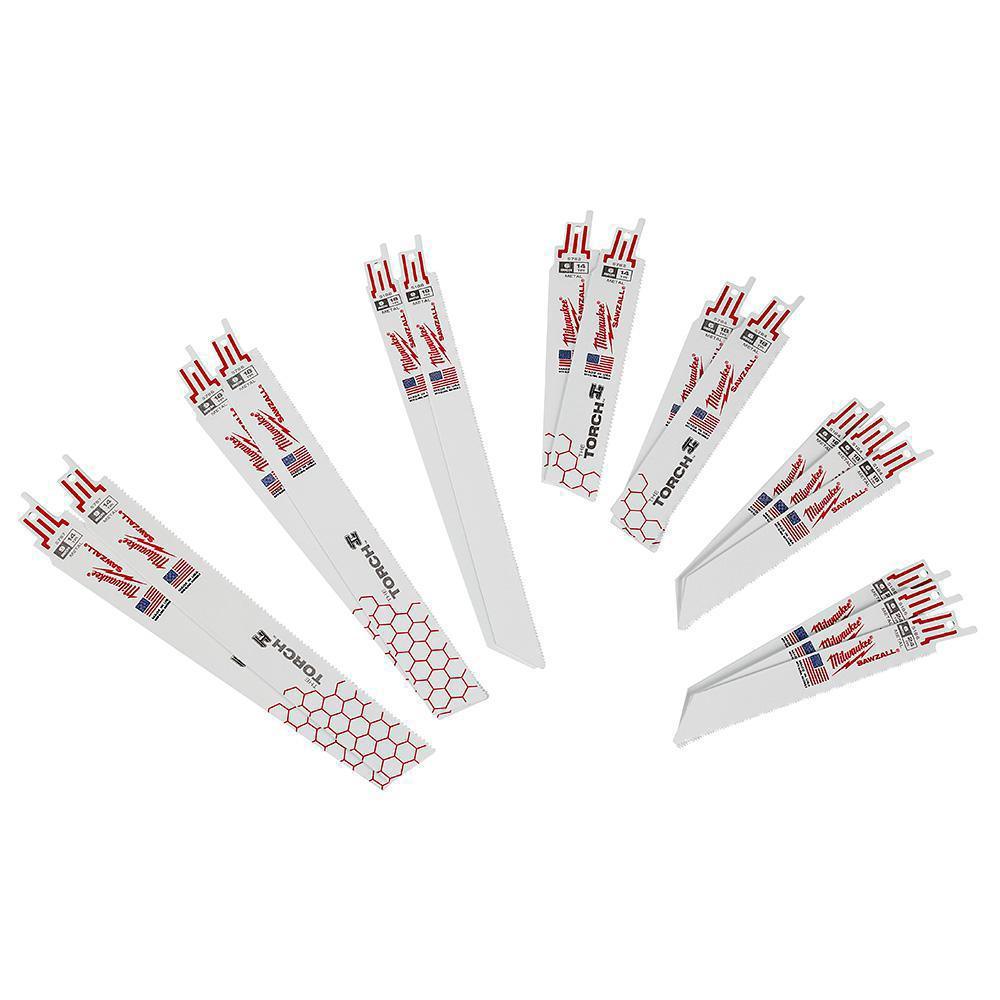 The Milwaukee 16 piece SAWZALL reciprocating saw blade set features an assortment of metal cutting SAWZALL blades for a broad range of professional applications. The TORCH demolition metal cutting blades provide 5X blade life and facilitate tough cuts. They also feature GRID IRON technology for increased blade stiffness. The metal cutting blades feature TOUGH NECK ribs that strengthen the blade tang and minimize breakage. The recip saw blades in the set are ideal for a variety of professional applications including general use and demolition.